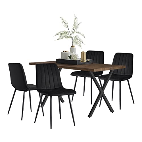 Merax Esstisch Set 120x70cm - 1 Tisch & 4 Stühle In Gold/Grau - Moderne Essgruppe Für Küche & Wohnzimmer