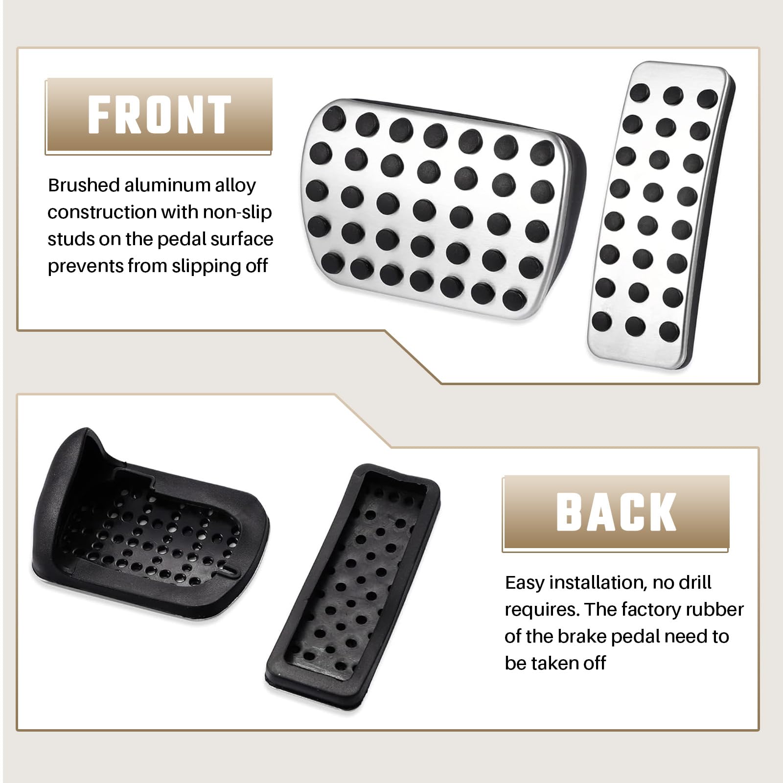 Hey Mercedes-Fahrer! Diese edlen Pedalabdeckungen von Uenopedin machen dein Fahrzeug-Innenraum gleich viel hochwertiger. Aus robustem Edelstahl gefertigt, rosten die Teile nie und halten ewig. Die rutschfeste Oberfläche gibt dir auch bei Regen perfekten Halt - total sicher! Passgenau für A-Klasse (W176), B-Klasse (W246), GLA-Klasse (X156), CLA-Klasse (C117) und viele mehr. Montieren ist super einfach: Kein Bohren, kein Schweißen, einfach aufstecken - fertig! Das Gaspedal wird von unten nach oben aufgesetzt, beim Bremspedal nimmst du einfach den originalen Gummi ab. Deine originalen Pedale bleiben komplett unversehrt. Mit den schicken schwarz-silbernen Optionen passt es zu jedem Interieur. Mehr Komfort, mehr Sicherheit, mehr Style - was will man mehr? Lieferung inklusive Gas- und Bremspedal, alles dabei für die schnelle Montage.