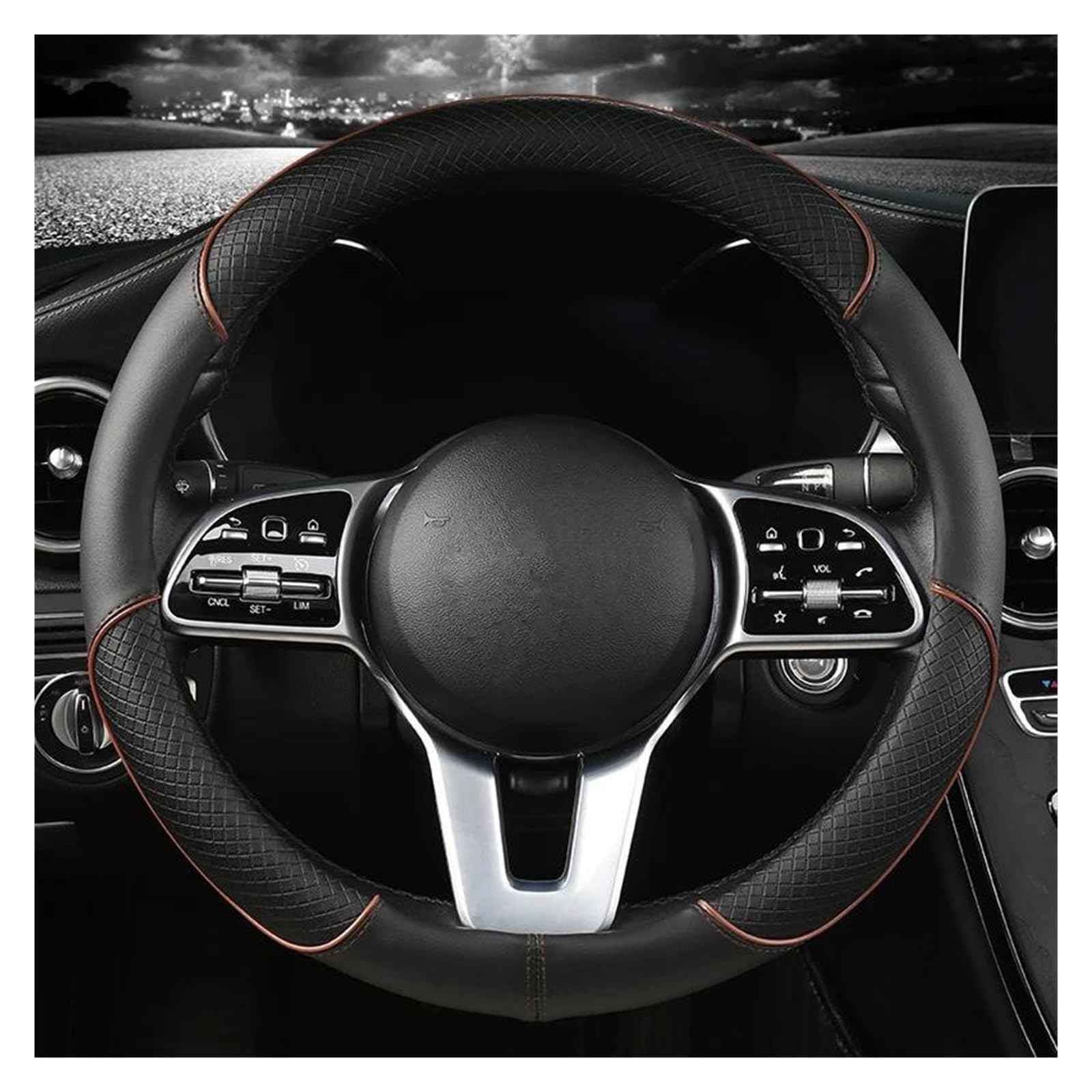 Hey Mercedes-Fahrer! Dieser Lenkradbezug passt perfekt für deine A-, C-, CLA-, E-, GLA-, GLC-, GLE-, S-, B- oder CLS-Klasse. Mit 38cm Durchmesser in O-Form sitzt er wie angegossen. Aus strapazierfähigem Mikrofaser-Leder das nicht nur super aussieht, sondern auch rutschfest und atmungsaktiv ist. Perfekter Grip für mehr Kontrolle auf der Straße - das erhöht die Fahrsicherheit spürbar! Die Hülle ist leicht aber robust, fühlt sich echt toll an und ist für alle Jahreszeiten geeignet. Ein super Geschenk für Familie oder Freunde die auch Mercedes fahren. Einfach überziehen und schon sieht dein Lenkrad aus wie neu - und fühlt sich auch so an! Ob Sommer oder Winter, deine Hände haben immer den perfekten Halt. Mach deine Fahrten sicherer und komfortabler mit diesem stylischen Lenkradbezug!
