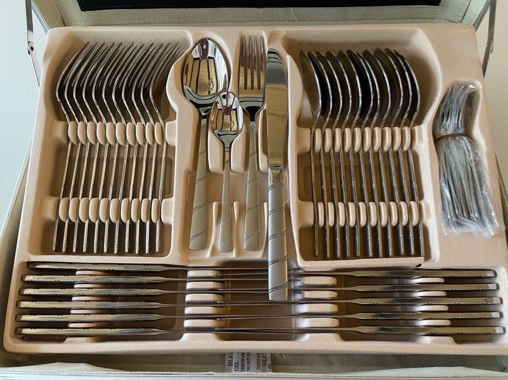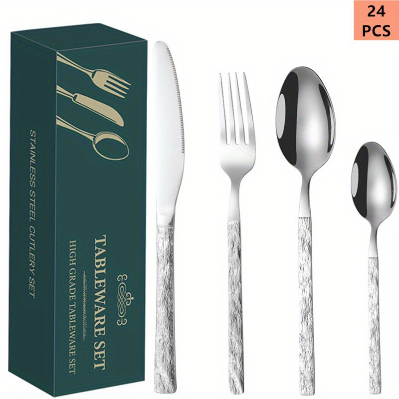 Perfekt ausgestattet für jede Gelegenheit! Dieses 24-teilige Besteck-Set von Joeczo enthält 12 Messer (21,2 cm) und 12 Gabeln (18,5 cm) - genug für 12 Personen. Aus hochwertigem 18/10 Edelstahl gefertigt, ist das Besteck rostfrei, kratzfest und spülmaschinengeeignet. Die ergonomischen Griffe liegen angenehm in der Hand und sind rutschfest. Ob für Familienessen, Gartenpartys, Feiertage oder den Restaurantbetrieb - dieses Set macht immer eine gute Figur. Die Messer schneiden mühelos durch Fleisch und Käse, die Gabeln sind vielseitig für Salate, Hauptgerichte und Desserts einsetzbar. Einfach praktisch und elegant zugleich - so macht Essen Spaß!