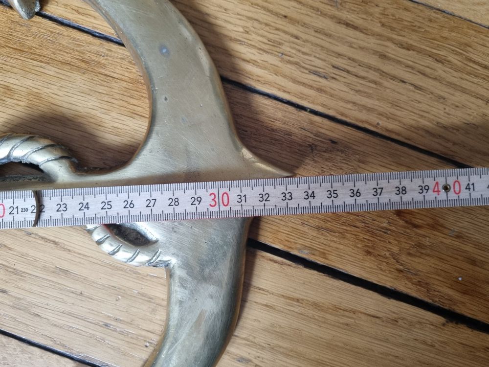 Ahoy, Seefahrer und Meer-Liebhaber! Dieser wunderschöne Stockanker aus glänzendem Messing bringt maritimes Flair in dein Zuhause. Mit 19 cm Höhe, 45 cm Breite und 18 cm Tiefe ist er ein echter Hingucker auf dem Kaminsims, im Regal oder als Tischdekoration. Perfekt für alle, die das Meer und die Freiheit lieben! Artikelnummer 7014 - ein klassisches Stück Seefahrtsgeschichte, das in keinem maritimen Zuhause fehlen sollte. Ob als Geschenk für den Kapitän unter deinen Freunden oder als Deko für dein eigenes Wohnzimmer - dieser Anker ist einfach timeless schön!