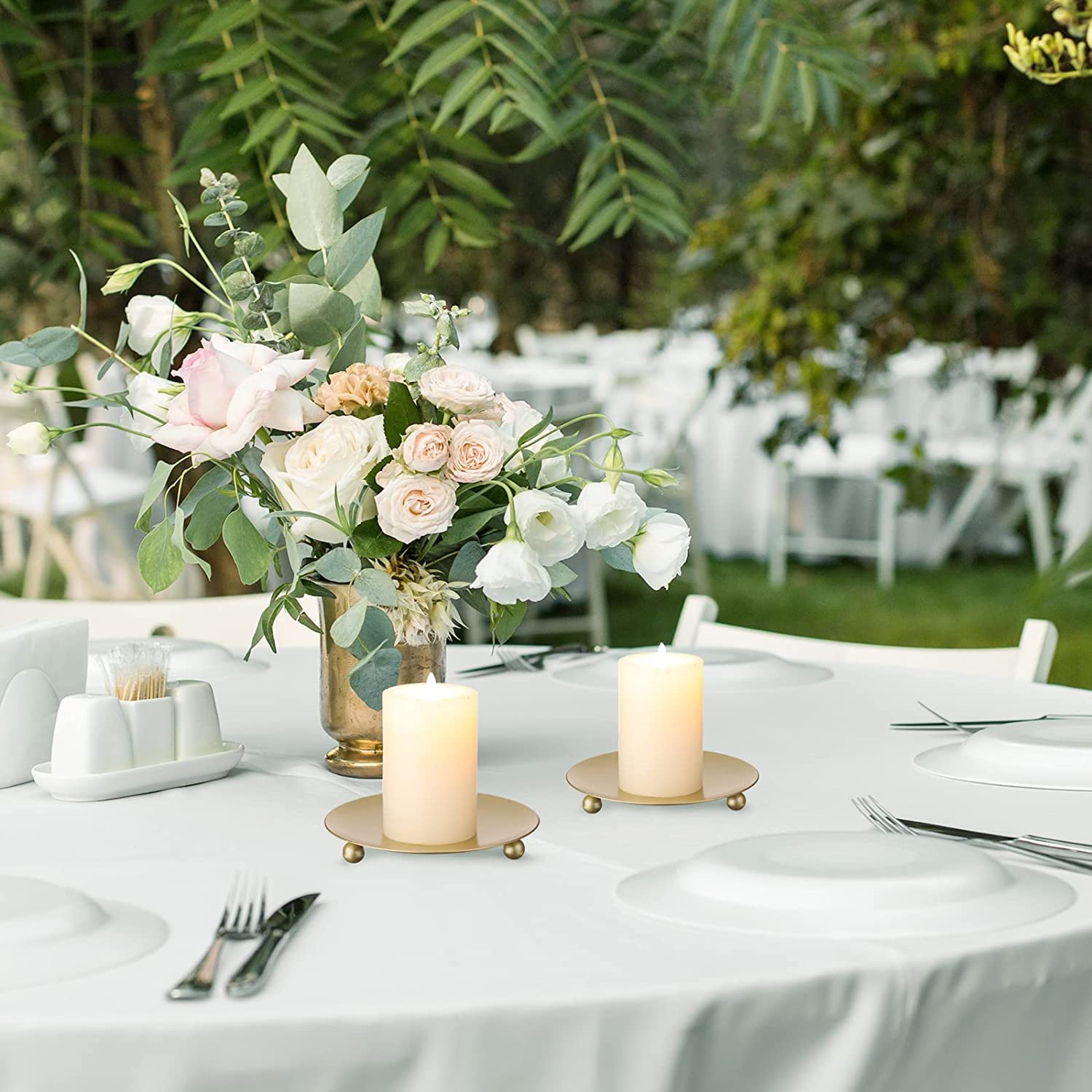 Wow, dieser goldene Kerzenständer ist einfach elegant! Aus Messing gefertigt, mit 10cm Durchmesser - perfekt für Stumpenkerzen und Stabkerzen. Super stabil und standfest, keine Sorge vor umkippenden Kerzen! Das glänzende Finish verleiht jedem Raum einen Hauch von Luxus. Perfekt für Hochzeiten, Geburtstage, Weihnachten oder religiöse Zeremonien wie Kommunion und Konfirmation. Aber auch im Alltag macht er sich super als Deko-Stück. Mit 10.5x10.5x3.5cm und 200g ist er handlich aber wertig. Einfach die Kerze reinstellen und schon verbreitet sie gemütliches Licht. Achtung: Außerreichweite von Kindern aufbewahren! Egal ob für besondere Anlässe oder die tägliche Gemütlichkeit - mit diesem Kerzenständer schaffst du sofort eine warme Atmosphäre. Einfach schön und funktional!