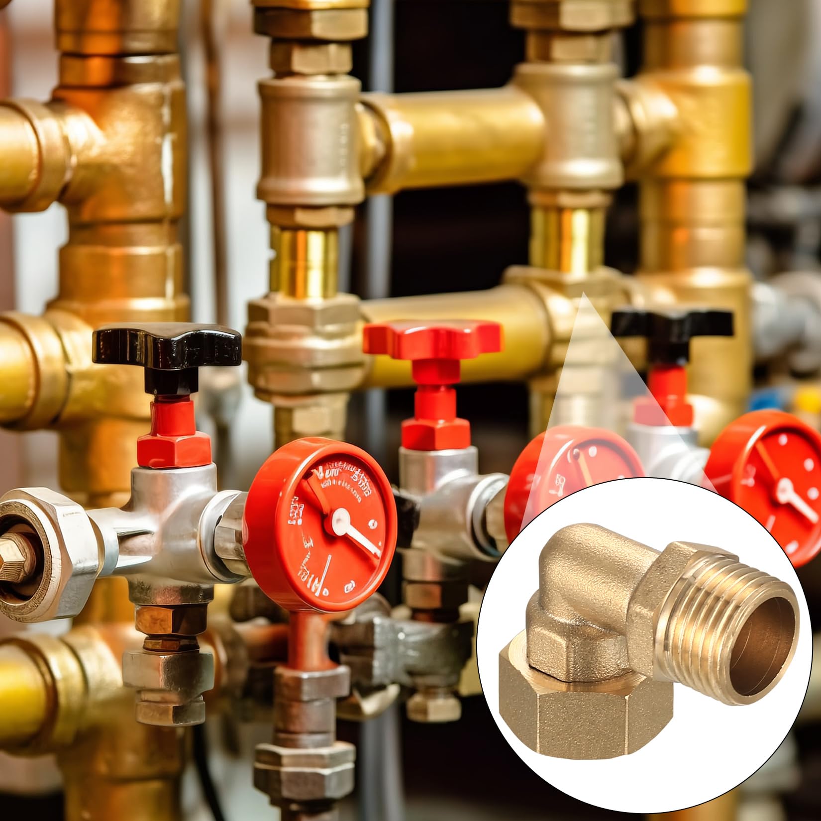 Für alle Heimwerker und Installateure! Diese Messing-Winkelverschraubungen sind die perfekte Lösung für Ecken und Kanten in deiner Wasser- oder Heizungsinstallation. Im 2er-Set hast du gleich genug für beide Seiten!\\n\\nTechnische Daten:\\n• Größe: 1/2\ (DN15) - der Standard\\n• AG/IG - Außengewinde zu Innengewinde\\n• 90 Grad Winkel - für rechtwinklige Abzweigungen\\n• Aus Messing - rostfrei und langlebig\\n• Mit Dichtung - dicht ohne zusätzliches Dichtmittel\\n\\nEinsatzbereiche:\\n• Trinkwasserinstallation - absolut sicher\\n• Heizungsanlagen - hält auch höhere Temperaturen\\n• Solaranlagen - korrosionsbeständig\\n• Gartenbewässerung - wetterfest\\n\\nDer Clou: Die Verschraubung ist drehbar - du kannst sie um 360° verdrehen für die perfekte Ausrichtung. Einfach mit PTFE-Band oder Hanf abdichten, festdrehen und schon ist die Verbindung dicht. Made to last - aus hochwertigem Messing, das nicht oxidiert!