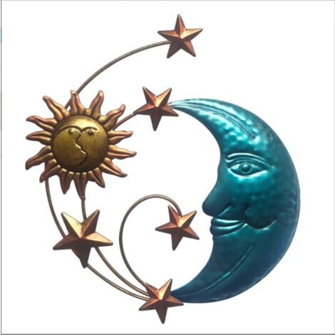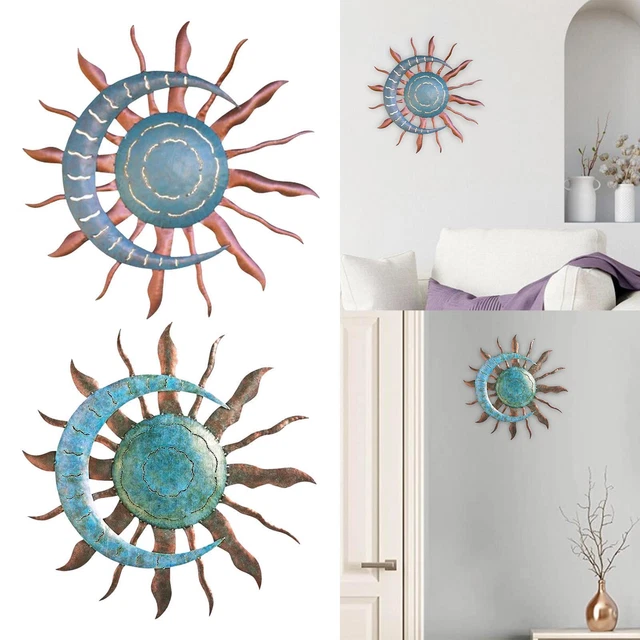 Sonne-Mond Wanddekoration Aus Metall | 30cm Himmels-Thema Skulptur Für Gartenzaun & Terrasse