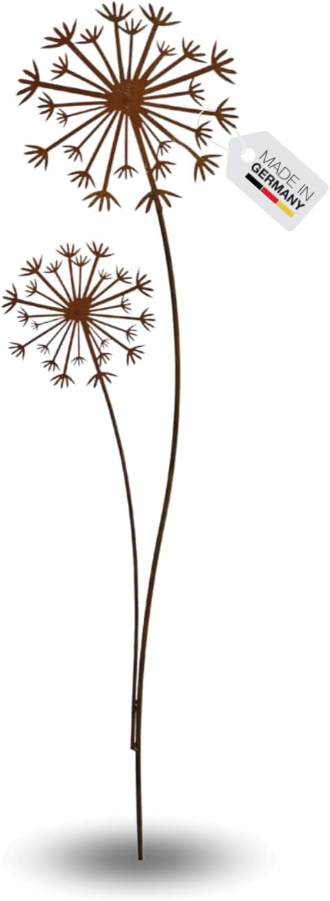 Diese süßen Pusteblumen-Gartenstecker in Rost-Optik bringen Charme in deinen Garten! Aus Metall gefertigt und bereits vorgerostet, sehen sie aus wie antike Fundstücke. Einfach in Beete, zwischen Rosen oder in Blumenkübel stecken - sofort wird dein Garten zum Hingucker. Perfekt für Staudenbeete, Rosenbeete oder einfach als Deko auf der Rasenfläche. Auch ein tolles Geschenk für Garten-Freunde oder zur Einweihungsparty. Der Frühlings- und Sommer-Deko-Klassiker schlechthin!