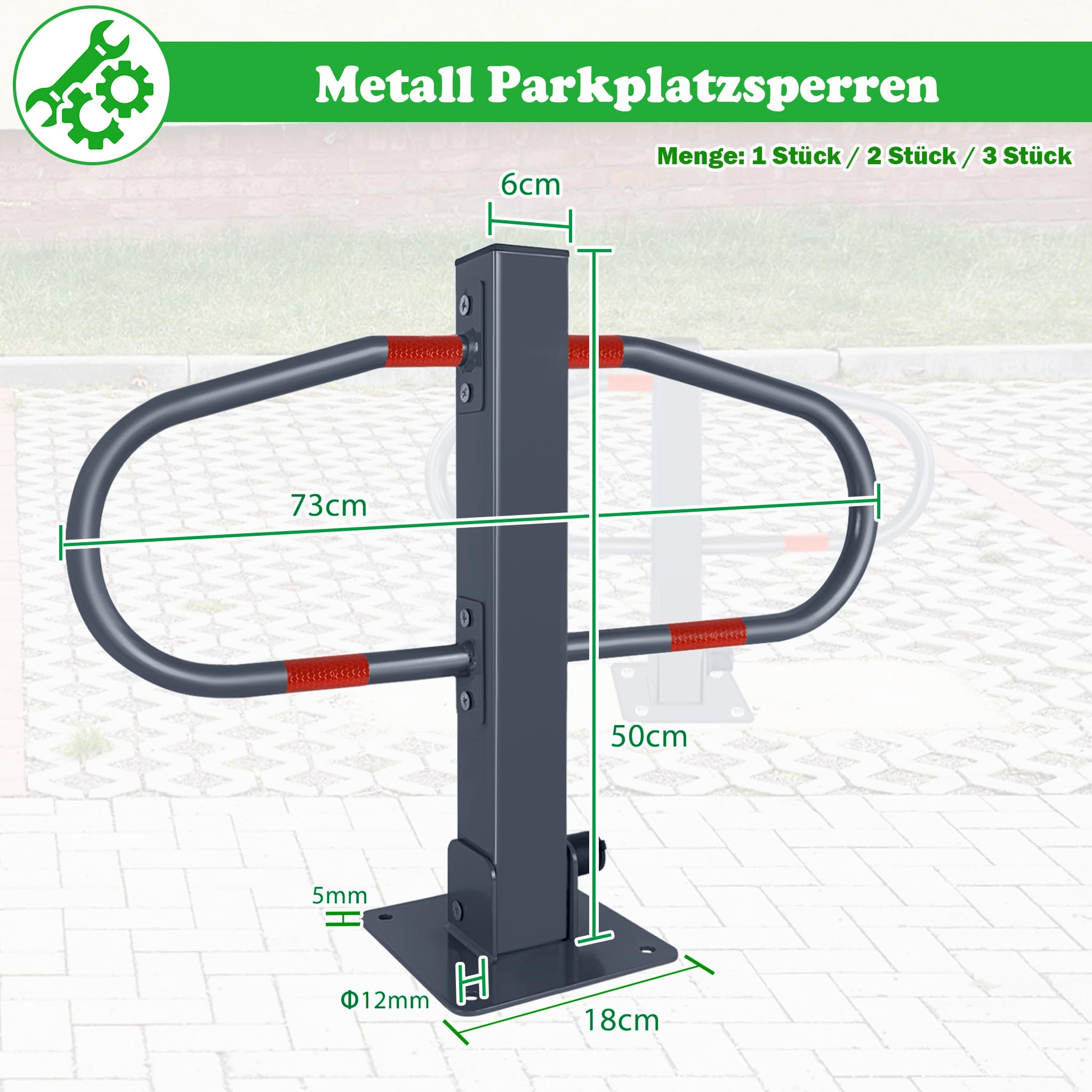 Diese Parkplatzsperre sichert deinen Stellplatz perfekt! Aus robustem Metall mit grauer Lackierung, rost- und korrosionsbeständig. Maße: 180x180x600mm - genau richtig für Garagen und Einfahrten.
