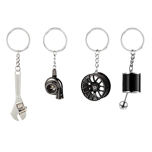Autobegeisterte aufgepasst! Dieses mega coole 5-teilige Schlüsselanhänger-Set von ZHAOYCSH ist genau das richtige für alle, die ihr Auto lieben. Die Schlüsselanhänger sehen aus wie echte Autoteile - dabei sind ein Turbolader, ein 6-Gang-Schalthebel, Felgen, Bremsscheiben und Aufhängungsteile detailgetreu nachgebildet. Hergestellt aus hochwertiger Zinklegierung sind sie richtig robust und halten auch täglicher Beanspruchung problemlos stand. Besonders cool: Einige Teile haben bewegliche Elemente - das Getriebe lässt sich drehen und das Turbinenrad rotiert! Perfekt also auch als kleines Anti-Stress-Spielzeug. Die integrierten Edelstahlringe halten eure Schlüssel sicher zusammen und verhindern, dass sie verloren gehen. Das Set kommt in einem eleganten Blauton und ist ein absolut geniales Geschenk für jeden Autofan - ob zum Geburtstag, zu Weihnachten oder einfach so. Ihr könnt die Anhänger aber nicht nur für Schlüssel verwenden, sondern auch an Rucksäcken, Werkzeugkisten oder sogar am Rückspiegel befestigen. So habt ihr immer eure Automobil-Leidenschaft dabei! Einfach ein must-have für jeden, der Autos liebt.
