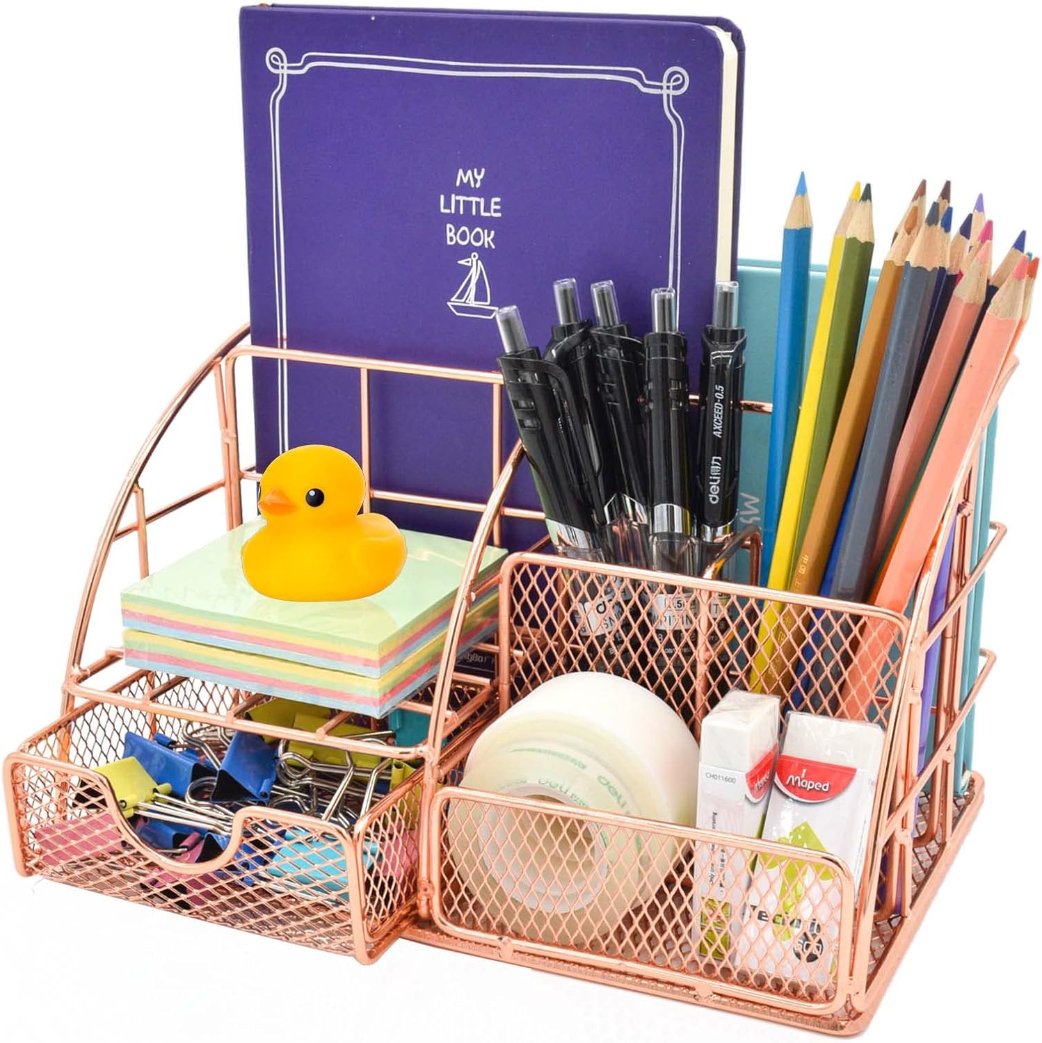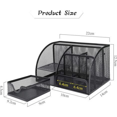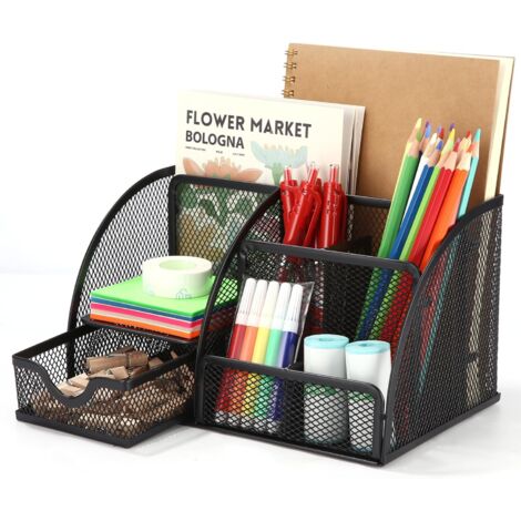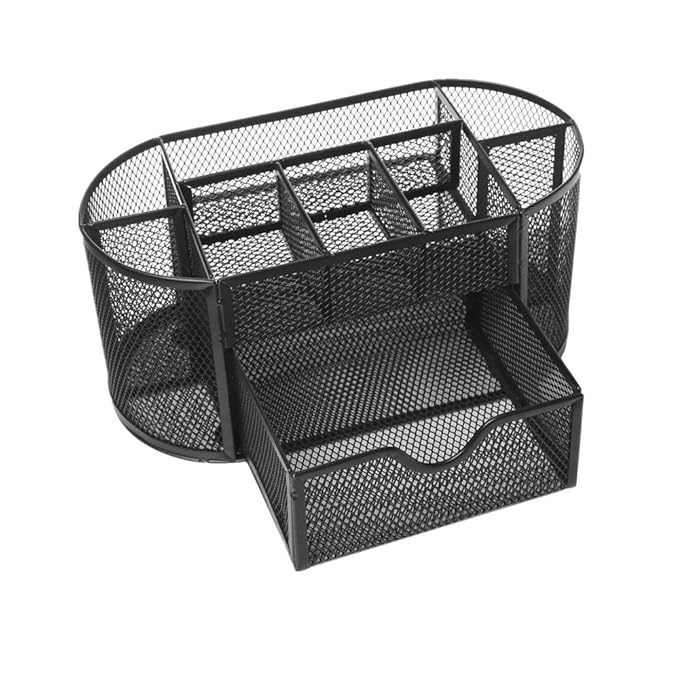 Wow, mit diesem schicken schwarzen Schreibtisch-Organizer von WUPYE hast du endlich Ordnung auf deinem Arbeitsplatz! Aus robustem Metallgeflecht mit Anti-Rost-Beschichtung - der hält was aus. 6 Fächer plus eine praktische Schublade bieten Platz für Stifte, Marker, Scheren, Lineale, Büroklammern und all den anderen Kleinkram, der sich sonst so ansammelt. Kommt schon fertig montiert an - einfach auspacken und hinstellen! Die vier Kissen unten schützen deinen Tisch und verhindern Rutschen. Perfekt fürs Homeoffice, Büro, Schule oder Studio. Leicht zu reinigen - einfach mit nem feuchten Tuch abwischen. Sieht nicht nur ordentlich aus, sondern ist auch noch ein echter Hingucker! Ein super Geschenk für Lehrer, Studenten oder Kollegen. Endlich kein Suchen mehr - alles griffbereit!