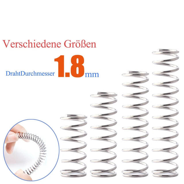Brauchst du stabile Druckfedern für dein Projekt? Hier kriegst du 4 Stück auf einen Schlag! Die Federn sind 90mm lang, haben nen Drahtdurchmesser von 2,0mm und nen Außendurchmesser von 18mm - also richtig robustes Zeug. Die Elastizität ist super, die halten was aus und ermüden nicht so schnell. Oberfläche schön glatt und die Spannung verteilt sich gleichmäßig. Perfekt für alle möglichen Reparaturen oder DIY-Projekte wo's um Zugfestigkeit und Langlebigkeit geht. Ob im Werkzeugkasten oder für spezielle Anwendungen - mit diesen Federn bist du gut ausgestattet. Die Qualität merkt man sofort, die sehen nicht so billig aus wie manch andere Federn. Einfach bestellen und loswerken!