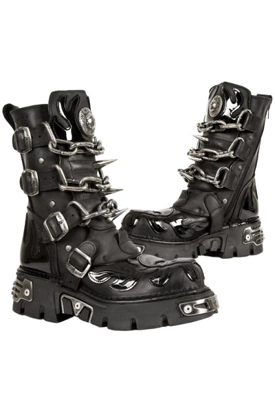 Hey, diese New Rock 727-S1 Stiefel sind einfach der Hammer! Aus echtem Naturleder gefertigt und voll im Gothic-Style. Perfekt für alle, die den klassischen Rock- und Metal-Look lieben. Mit seitlichem Reißverschluss kommst du easy rein, und die Schnürung plus Schnallen sorgen für bombenfesten Halt. Die silbernen Spikes und Metallakzente geben den Stiefeln diesen unverwechselbaren Punk-Rock-Charakter. Und die Sohlen mit den silbernen Metalleinsätzen? Einfach nur krass! Runde Zehenspitze inklusive. Ob zum Konzert, Festival oder einfach nur für den täglichen Style - mit diesen Stiefeln machst du definitiv was her. Sie sind ein absolutes Must-have für alle, die sich nicht mit langweiliger Standardware zufriedengeben wollen. Qualität und Design, die man sieht und fühlt!
