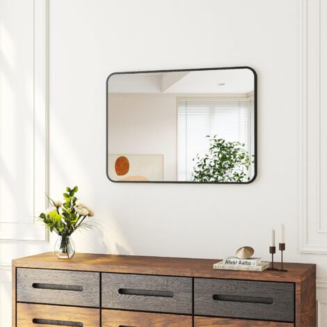 Hey, dieser Wandspiegel ist ja richtig stylisch! 40x60cm groß mit schwarzem Metallrahmen - passt in jedes Bad oder Wohnzimmer. Abgerundete Ecken für mehr Sicherheit und Eleganz. 5mm dickes HD-Glas ohne Verzerrung - explosionsgeschützt. Kann horizontal oder vertikal aufgehängt werden. Einfache Montage mit vorgebohrten Löchern und mitgelieferten Schrauben. Perfekt fürs Schminken, Rasieren oder als Deko-Element. Der schmale Rahmen sieht modern aus und ist leicht zu reinigen. Einfach aufhängen und sofort mehr Licht und Raumtiefe genießen!