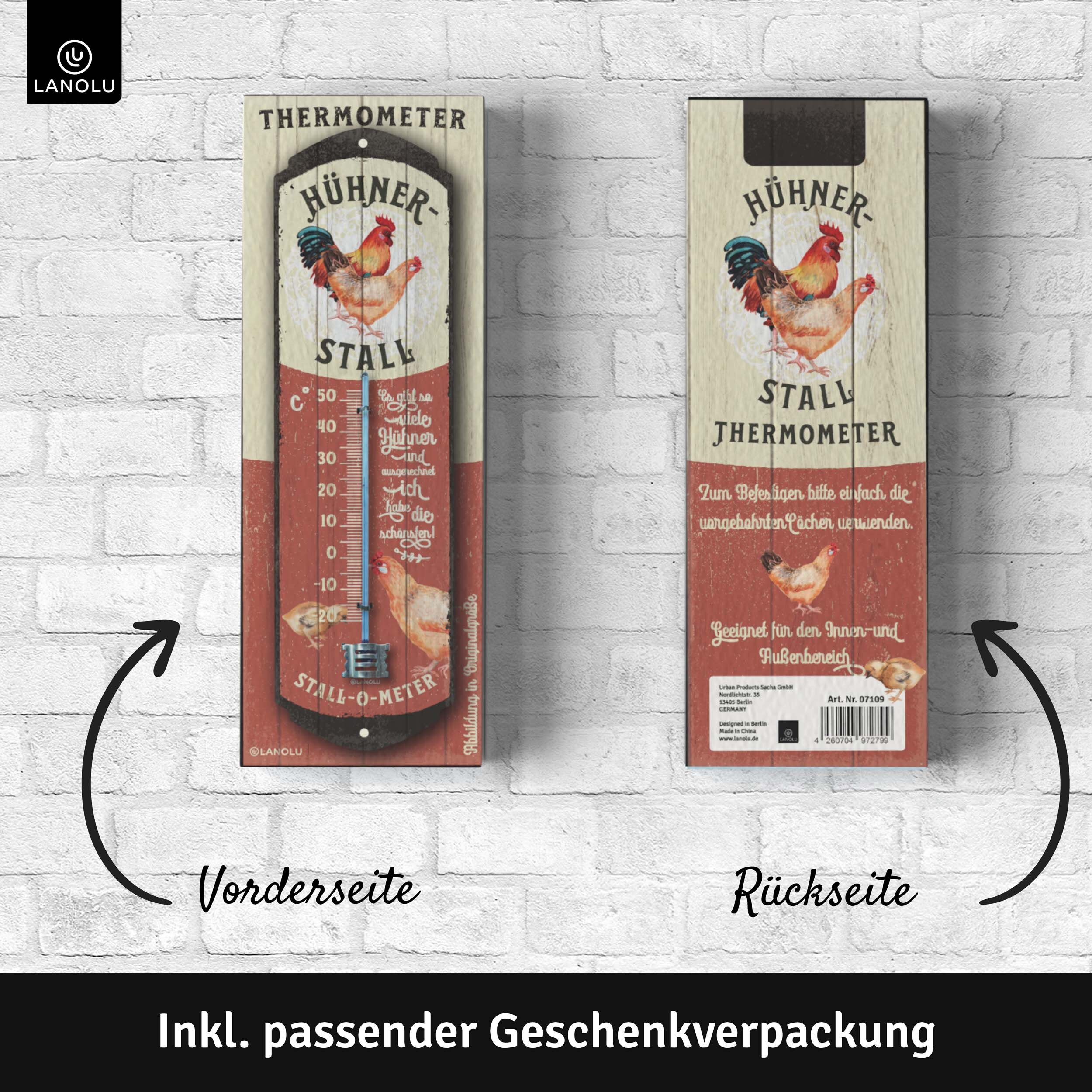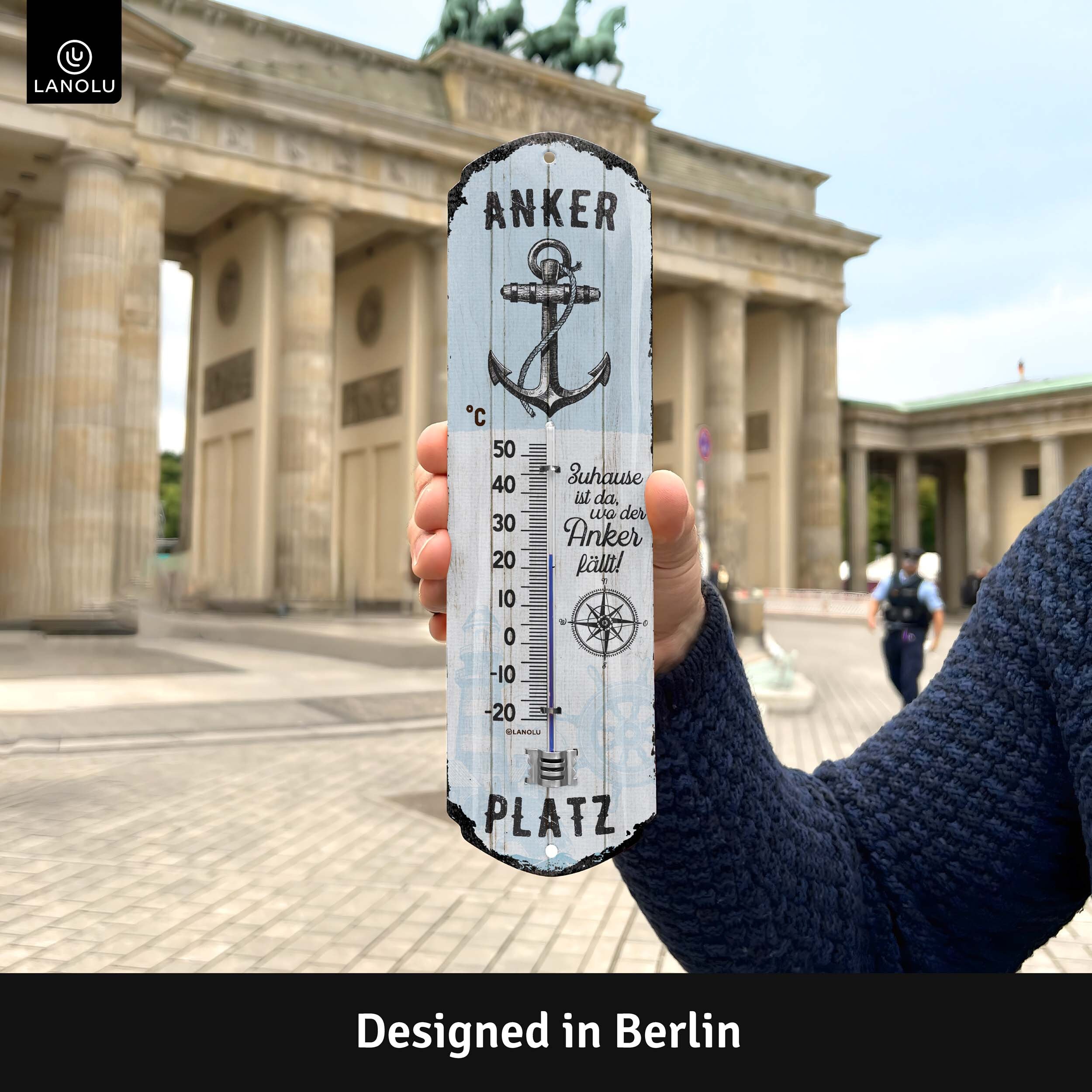 Suchst du noch eine besondere Deko für dein Zuhause? Das LANOLU Heimathafen Thermometer ist nicht nur praktisch, sondern auch ein total stylischer Hingucker! Mit dem Spruch 'Heimathafen - Zu Hause ist, wo das Herz vor Anker geht' trifft es genau ins Schwarze. Das Metallschild hat einen coolen Vintage-Look, ist aber trotzdem wetterfest und hält draußen im Garten genauso gut wie drinnen in der Küche. Maße: 8 x 28 cm. Mit den zwei vorgebohrten Löchern kannst du es easy anbringen - ob mit Schrauben, Nägeln oder Klebehaken. Das Design kommt aus Berlin, und die Qualität spricht für sich: kräftige Farben, stabiles Stahlblech und eine Lackierung, die lange hält. Perfekt als Geschenk zur Einweihung, zum Geburtstag oder einfach so für dich selbst. Über 300.000 Kunden sind schon begeistert - und du?