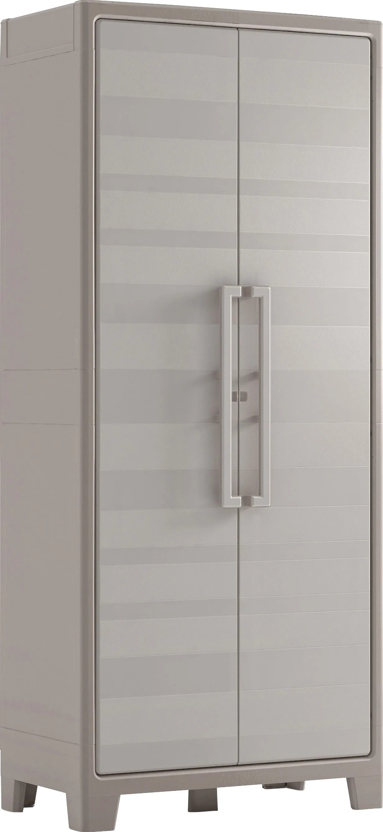 Hallo! Der Kreher XXL Metallschrank ist deine Lösung für mehr Ordnung in Werkstatt, Büro oder Garage. Mit den Maßen 80x44x180 cm ist er richtig geräumig - da passt alles rein, was rumliegt. Die extra Breite und Tiefe sind super für Boxen und Werkzeugkoffer, die in normalen Schränken oft nicht passen. \\n\\nAusstattung: 4 höhenverstellbare Böden, jeder trägt bis zu 50 kg! Zwei Türen, die sich abschließen lassen (Schlüssel inklusive), und 4 Füße mit Gewinde, falls der Boden mal nicht ganz eben ist. Das Metall ist 0,6 mm stark und in Hellgrau (RAL 7038) lackiert - sieht clean aus und ist robust. \\n\\nHergestellt in Italien, TÜV-geprüft und einfach gut verarbeitet. Ob du jetzt Werkzeug, Akten oder Gartenzeug unterbringen willst - dieser Schrank macht's möglich. Einfach aufstellen, einräumen und sich über die gewonnene Ordnung freuen! Bei 42 kg Gewicht am besten zu zweit tragen.