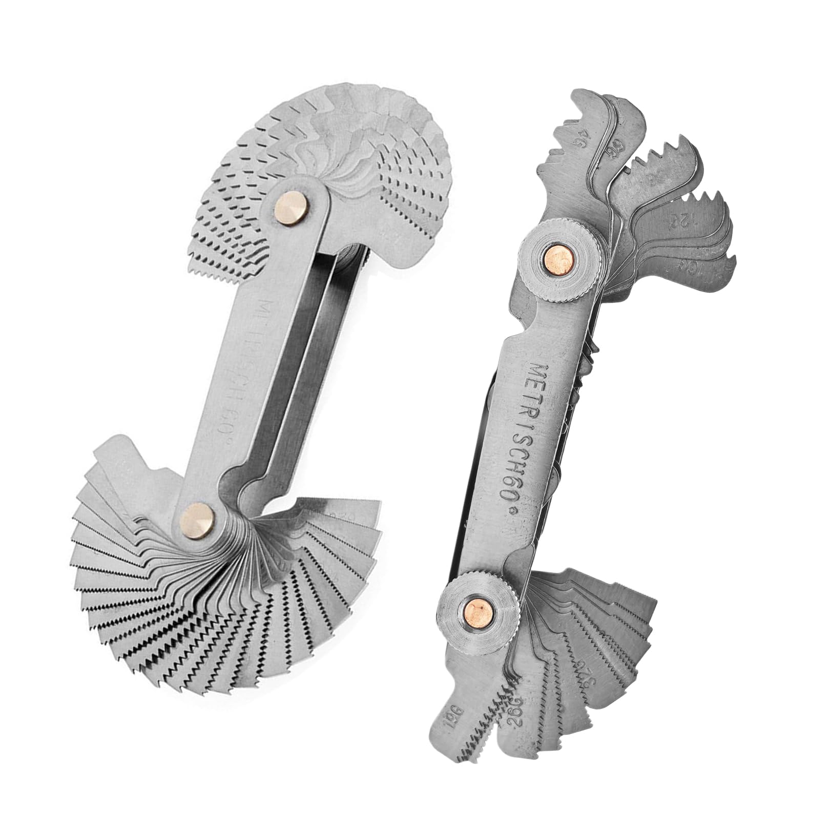 Für alle, die's genau wissen wollen! Diese 52-teilige Gewindelehre aus Edelstahl misst metrische und Zoll-Gewinde präzise ab. Super für Mechaniker, Schlosser und Hobby-Werkler. Jedes Blättchen ist aus rostfreiem Edelstahl - hält ewig und korrodiert nicht! Mit 60° Standard-Winkel für genaue Messergebnisse. Die dünnen Blätter kommen auch in enge Gewinde rein. Perfekt zum Prüfen von Schneidwerkzeugen an der Drehmaschine. Passt in jede Werkzeugkiste - nur 11x5,5cm klein! Inklusive Radius- und Räumungslineal für zusätzliche Messmöglichkeiten. Ob in der Werkstatt, Industrie oder daheim - dieses Set ist ein echter Alleskönner! Macht die Arbeit leichter und präziser. Einfach das passende Blättchen ansetzen und schon siehst du, welches Gewinde du vor dir hast. Unverzichtbar für jede Metallbearbeitung! Hochwertige Verarbeitung - da hast du lange Freude dran. Ein Muss für jeden, der mit Gewinden zu tun hat!