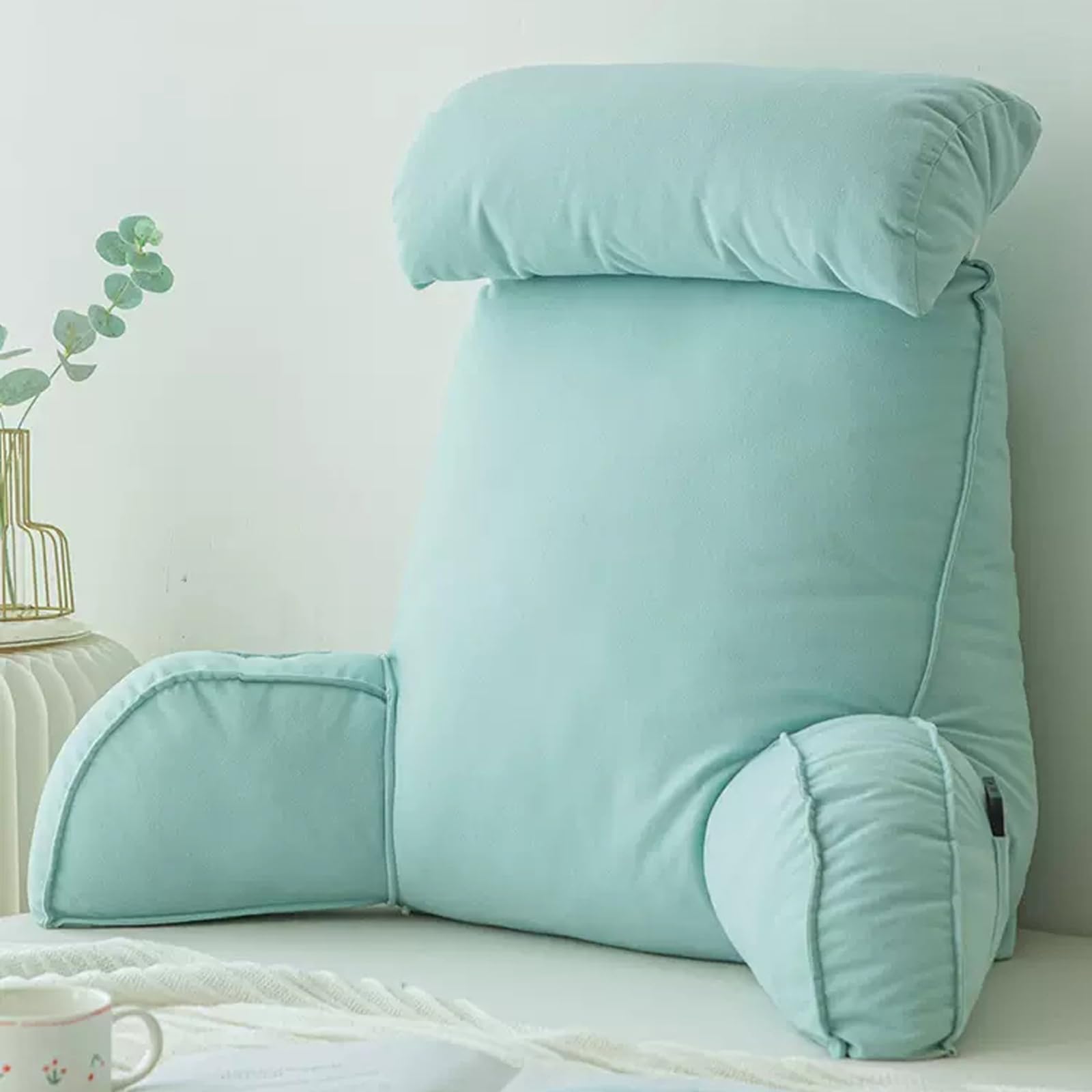 Endlich richtig gemütlich sitzen! Dieses ultra-bequeme Lesekissen von Miaogoo ist wie eine große Umarmung für deinen Körper. Egal ob du liest, zockst oder Serien schaust - damit wird jede Sitzsession zum Wellness-Erlebnis! \\n\\nDas kann das Wunderkissen:\\n• Konturierte Nackenrolle für perfekte Stütze\\n• Integrierte Armlehnen für totale Entspannung\\n• Lendenwirbelpolsterung gegen Rückenschmerzen\\n• Seitentaschen für Snacks, Buch oder Fernbedienung\\n• Tragegriff für einfachen Transport\\n\\nMaße: 75 x 55 cm - perfekt für Bett, Sofa oder Boden. Und es gibt's in 9 trendigen Farben: Blau, Rosa, Kaffee, Marineblau, Grün, Schwarz, Grau, Lila, Hellviolett. \\n\\nDer Bezug ist aus weichem Samtstoff und maschinenwaschbar - super praktisch! Die Füllung besteht aus Premium-Baumwolle und bietet die perfekte Mischung aus Weichheit und Unterstützung. \\n\\nIdeal für:\\n• Lange Lesesessions\\n• Gaming-Marathons\\n• Filmabende auf dem Boden\\n• Entspannung nach der Arbeit\\n• Auch super für Kinder!\\n\\nMach dir's gemütlich und gönn dir dieses Traumkissen - dein Rücken wird's dir danken!