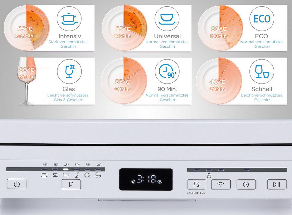 Moderne Spültechnik für deine Küche! Der Midea Geschirrspüler im schlanken 45cm Design bietet alles, was du für makellos sauberes Geschirr brauchst. Mit 9 Maßgedecken Kapazität und WiFi-Funktion steuerst du ihn bequem per App von unterwegs. Die Energieeffizienzklasse E und nur 49 dB Betriebslautstärke machen ihn zum sparsamen und leisen Begleiter. Besonders praktisch: Die Halbbeladungs-Option spart Wasser und Energie bei kleineren Mengen. Mit 5 Programmen - Intensiv, Normal, ECO, 90Min und Schnell - findest du für jede Verschmutzung die richtige Einstellung. Der Aqua-Stop schützt zuverlässig vor Wasserschäden und der Universal-Besteckkorb bietet Platz für alle Utensilien. Ob freistehend oder als Einbauvariante - dieser Geschirrspüler passt sich deinen Bedürfnissen an. Moderne Spültechnik, die das Leben leichter macht!