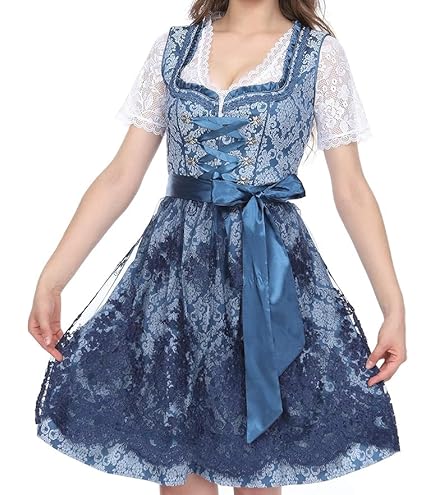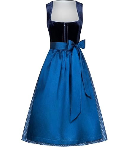 • Dirndl Damen Midi 2-teilig - Trachtenkleid Mit Schürze Für Oktoberfest