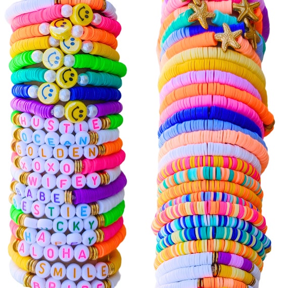 Oh wie süß! Dieses 7er Set mit Heishi Armbändern ist perfekt für alle, die es bunt und verspielt mögen. Die Armbänder aus Polymer Clay, CCB und Acryl sind super easy zu kombinieren - einfach mehrere übereinander tragen für den echten Boho-Chic! Sie sind elastisch und passen sich jeder Handgelenkgröße an. Perfekt für Sommer, Strand, Festivals oder einfach als täglicher Begleiter. Die glatten Perlen liegen angenehm auf der Haut und die Farben sind einfach nur traumhaft. Tolles Geschenk für Freundinnen oder einfach mal was für sich selbst! Achtung: Enthält Kleinteile - nicht für kleine Kinder geeignet. Einfach mal ausprobieren und den Arm verschönern!