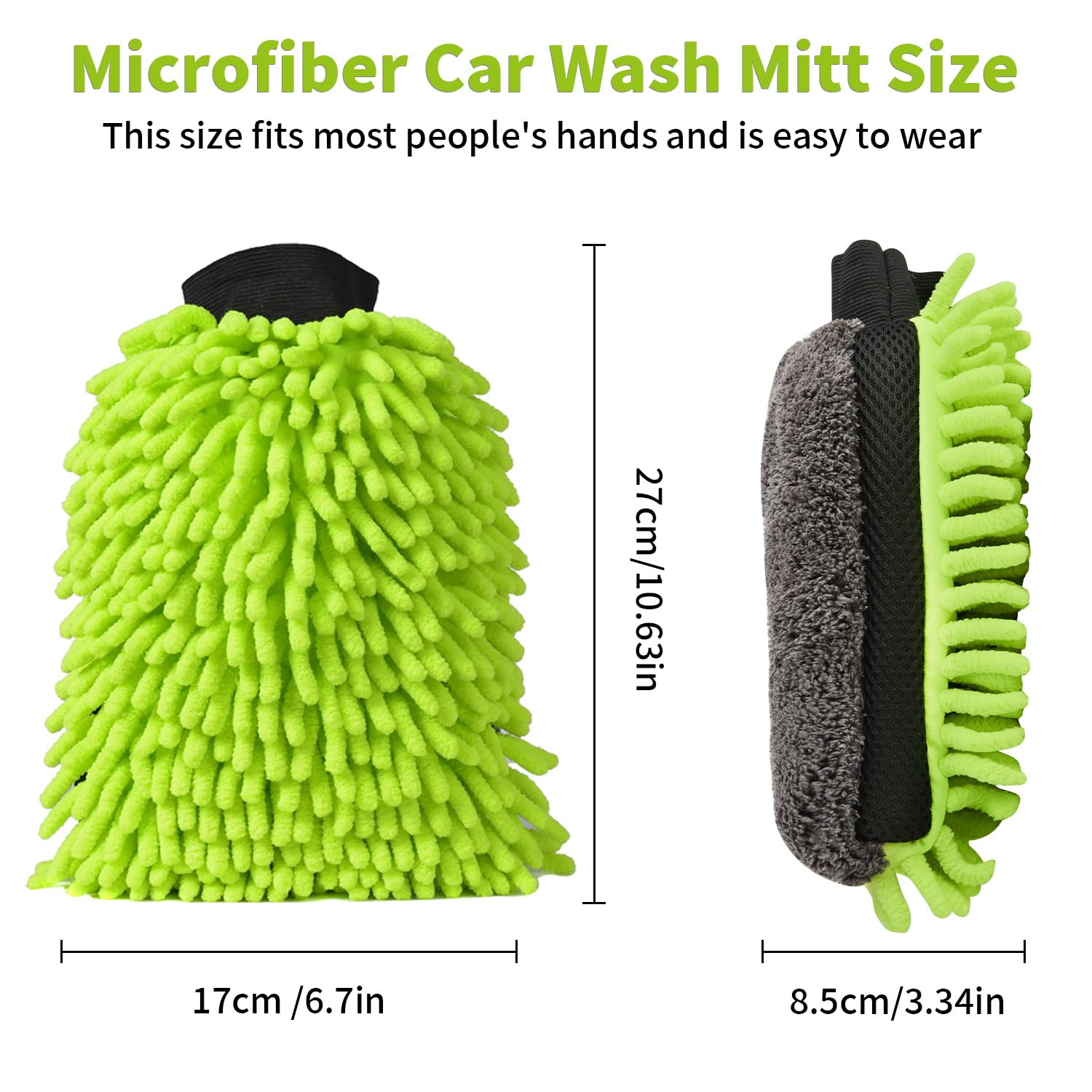 Autowaschen war noch nie so einfach! Mit diesen Mikrofaser-Waschhandschuhen von DU Life machst du dein Auto blitzblank ohne Kratzer. Das 2er Set gibt dir immer einen frischen Handschuh zur Hand. Das besondere Chenille-Material saugt wahnsinnig viel Wasser auf - bis zum 10-fachen des Eigengewichts! Drei verschiedene Oberflächen erledigen unterschiedliche Aufgaben: Die weiche Chenille-Seite für normalen Schmutz, die Korallen-Vlies-Seite ist super sanft zur Lackierung und die Gitter-Oberfläche entfernt hartnäckige Flecken wie Vogelkot oder Kleberreste. Das elastische Bündchen am Handgelenk verhindert das Verrutschen und der verdickte Schwamm auf der Rückseite speichert noch mehr Wasser. Du musst den Handschuh nicht mal festhalten - er bleibt einfach an der Hand! Kommt auch in enge Ritzen rein, wo andere Waschwerkzeuge scheitern. Und nach dem Autowaschen einfach in der Waschmaschine waschen - praktisch! Übrigens nicht nur fürs Auto super, sondern auch für Möbel, Küche oder Bad.