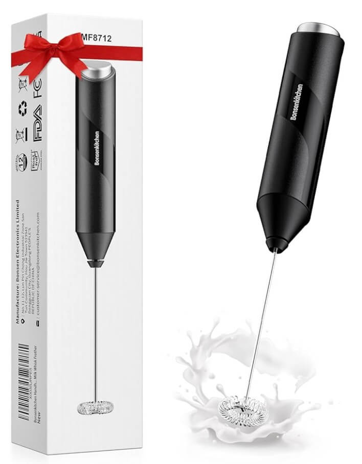 Wow, mit diesem Milchaufschäumer von Bonsenkitchen machst du cremigen Schaum für deinen Kaffee in nur 15-20 Sekunden! Einfach den Edelstahl-Schneebesen in die Milch halten und den Knopf drücken - schon hast du perfekten Schaum für Latte, Cappuccino oder heiße Schokolade. Der Motor ist stark und leise, und das ergonomische Design liegt gut in der Hand. Aus lebensmittelechtem Edelstahl und BPA-frei, also total unbedenklich. Leicht zu reinigen - einfach unter fließendem Wasser abspülen. Tipp: Milch unter 60°C hält den Schaum länger fluffig. Silbernes Design passt in jede Küche und ist ein super Geschenk für Kaffeeliebhaber. Endlich Barista-Qualität für zu Hause!