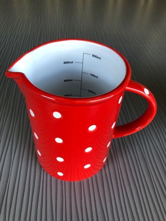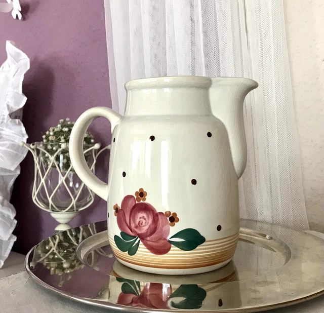 Dieser Keramik-Krug ist einfach nur niedlich! Im Landhausstil mit hübschen Mustern - ein Hingucker auf jedem Frühstückstisch. Fassungsvermögen: 0,9 Liter - perfekt für Milch, Saft oder Wasser. Der breite Ausguss macht das Einschenken tropffrei. Maße: 19,2x12,5x12,5cm - also nicht zu groß, nicht zu klein. Spülmaschinengeeignet, super praktisch! Sieht aus wie von Oma, aber in top-moderner Qualität. Aus hochwertiger Keramik, fühlt sich gut an in der Hand. Macht jedes Frühstück oder Kaffeetrinken gleich viel gemütlicher! Einfach schön!