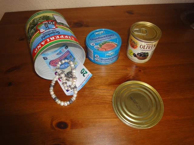 Geniale Idee - diese Dose sieht aus wie ne normale Konserve, ist aber eigentlich ein Safe! Perfekt um Geld, Schmuck oder andere Wertsachen zu verstecken. \\n\\nKein Dieb würde da drauf kommen! Sieht 100% authentisch aus. Wird sogar mit ner Jute-Tasche geliefert. \\n\\n• Als Mildessa-Konserve getarnt \\n• Inklusive Jute-Beutel \\n• Einfach zu verwenden \\n• Extrem unauffällig \\n• Für zu Hause oder unterwegs\\n\\nSuper als Strandsafe im Urlaub oder einfach als Geheimversteck daheim. Bietet basic Schutz und ist mega diskret. Einfach genial für alle die was sicher verstecken wollen!