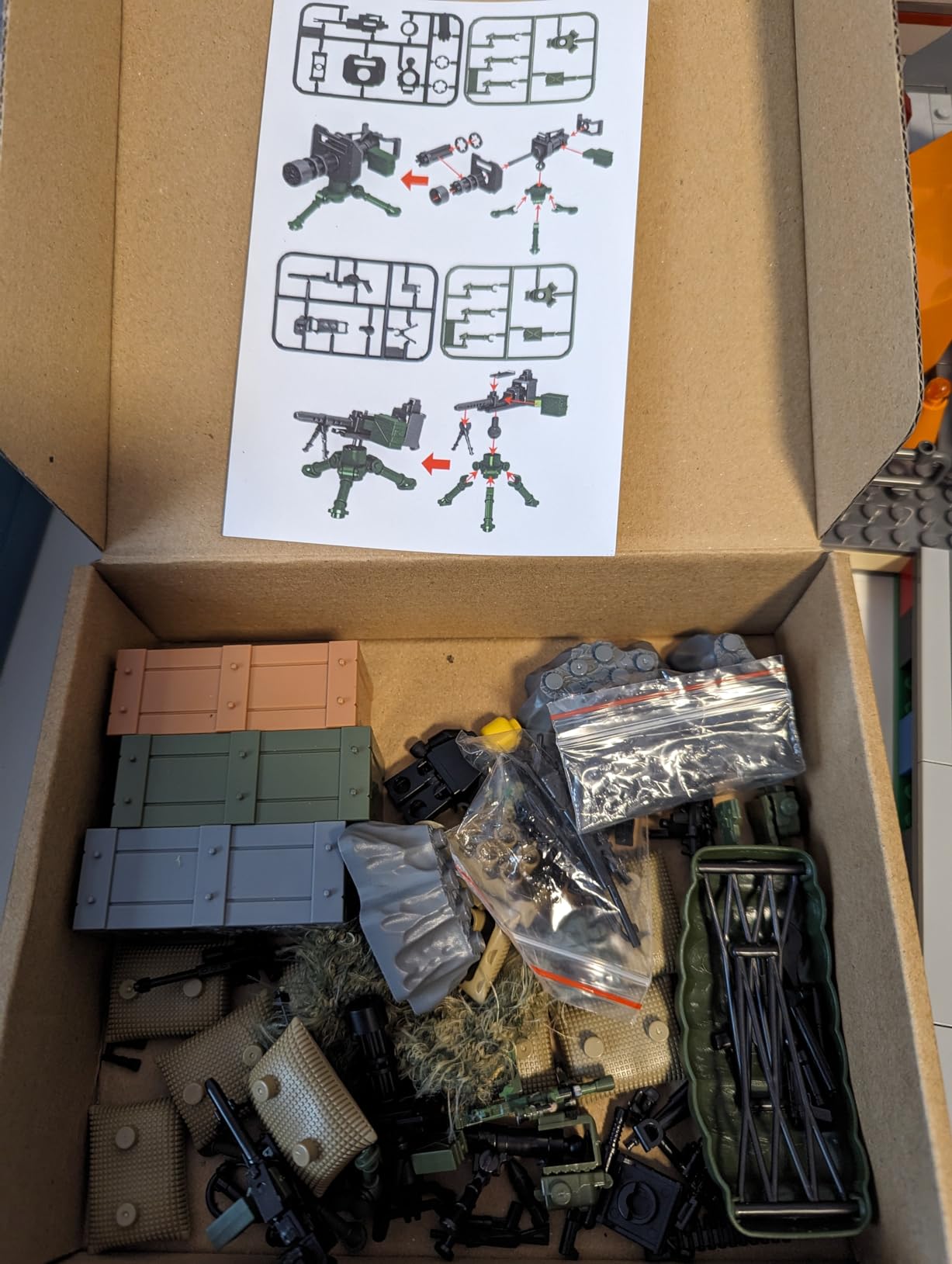 Rüste deine Armee-Figuren aus! Dieses 150+ Teile SWAT Waffen Set enthält alles für actiongeladenes Spielvergnügen: Waffen, Granaten, ballistische Westen, Nachtsichtgeräte und mehr. Kompatibel mit großen Marken-Bausteinen für grenzenlose Spielmöglichkeiten. Aus hochwertigem ABS-Kunststoff für langanhaltenden Spielspaß. Einfache Montage in wenigen Schritten. Perfekt für Kinder ab 6 Jahren (unter Aufsicht) und erwachsene Sammler. Erschaffe deine eigenen Militär-Szenarien und Action-Abenteuer. Hol dir jetzt dieses umfangreiche Set und erwecke deine Figuren zum Leben!