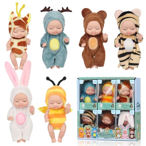 Oh wie süß! Diese 4 Mini-Babypuppen sind einfach nur zum Knuddeln! Mit ihren 4 Zoll (ca. 10,5 cm) Größe passen sie perfekt in kleine Kinderhände und sind ideal für unterwegs. Jede Puppe hat diesen niedlichen schlafenden Gesichtsausdruck und bewegliche Gelenke - da können die Kleinen sie in alle möglichen Positionen bringen! Die Puppen kommen schon in ihren eigenen süßen Outfits daher, die weich und abnehmbar sind. So lernen die Kinder spielerisch An- und Ausziehen. Hergestellt aus PVC, Stoff und Vinyl fühlen sich die Puppen richtig lebensecht an. Perfekt für Mädchen ab 3 Jahren, um ihre motorischen Fähigkeiten zu entwickeln und in Rollenspiele einzutauchen. Achtung: Wegen der kleinen Teile nicht für Kinder unter 3 Jahren geeignet! Im Set sind 4 verschiedene Puppen in einer 22x9,3 cm Box - ein super Geschenk für Geburtstage oder einfach so. Die detaillierten Gesichtszüge und die qualitativ gute Verarbeitung machen diese Puppen zu echten Lieblingen!