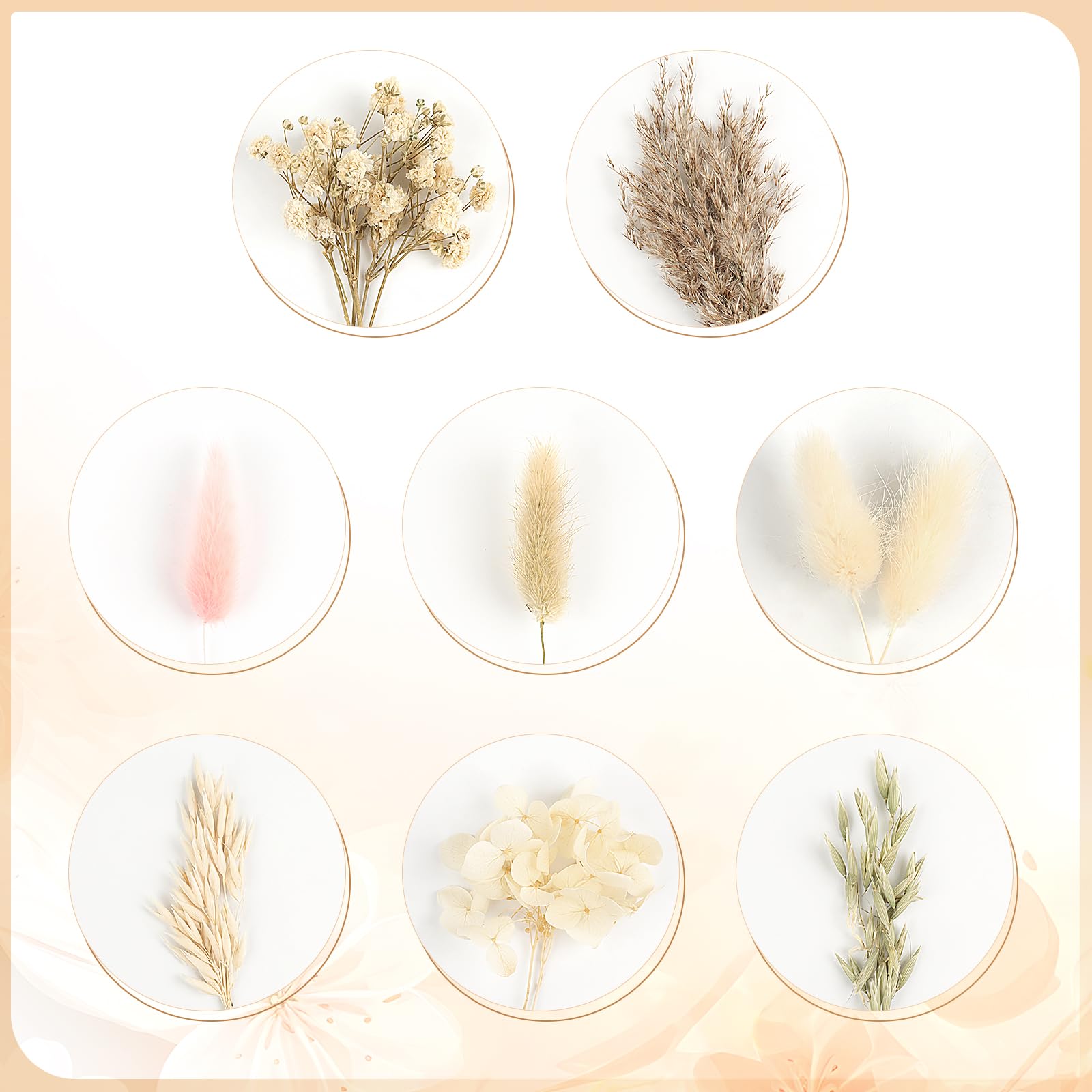 Einfach zauberhaft! Dieses Set mit 6 mini getrockneten Blumensträußen bringt boho-flair in dein Zuhause. Jeder Strauß ist 19-22cm lang und enthält 9 verschiedene Blumenarten - Hasenschwänze, Lavendel, Pampasgras, Billy Balls und mehr! Alles natürlich getrocknet, behält seine schöne Textur und warme Herbstfarben. Perfekt für die Vase auf dem Kaminsims, Esstisch oder Sideboard. Super für Hochzeitsdeko, Partys oder einfach so als hübsche Deko. Du kannst die Sträuße auch auseinandernehmen und neu kombinieren - total flexibel! Kein Gießen nötig, verblüht nicht - hält ewig! Ein wunderschönes Geschenk für jeden Anlass: Geburtstag, Muttertag, Weihnachten oder einfach mal so. Schafft sofort eine gemütliche, romantische Atmosphäre. Einfach hinstellen und sich an der natürlichen Schönheit erfreuen - mehr Aufwand braucht diese Deko nicht!
