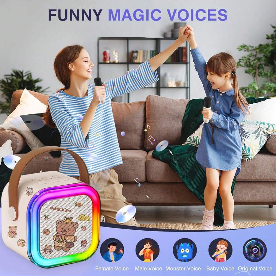 • Mini Karaoke Maschine Mit 2 Mikrofonen - Bluetooth Lautsprecher Für Kinder & Erwachsene