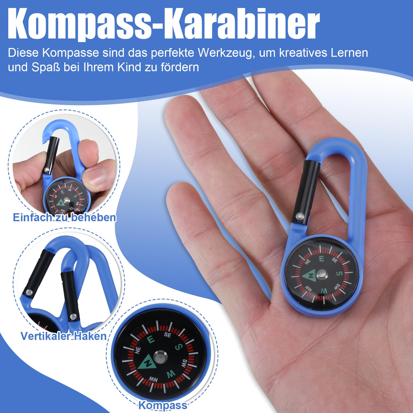 Suchst du praktische Mini-Kompasse für deine Outdoor-Abenteuer? Dieses 24-teilige Set in bunten Farben ist perfekt für dich! Jeder Kompass hat einen Karabinerhaken und kann so einfach an Rucksäcken, Schlüsselbunden oder Gürteln befestigt werden.