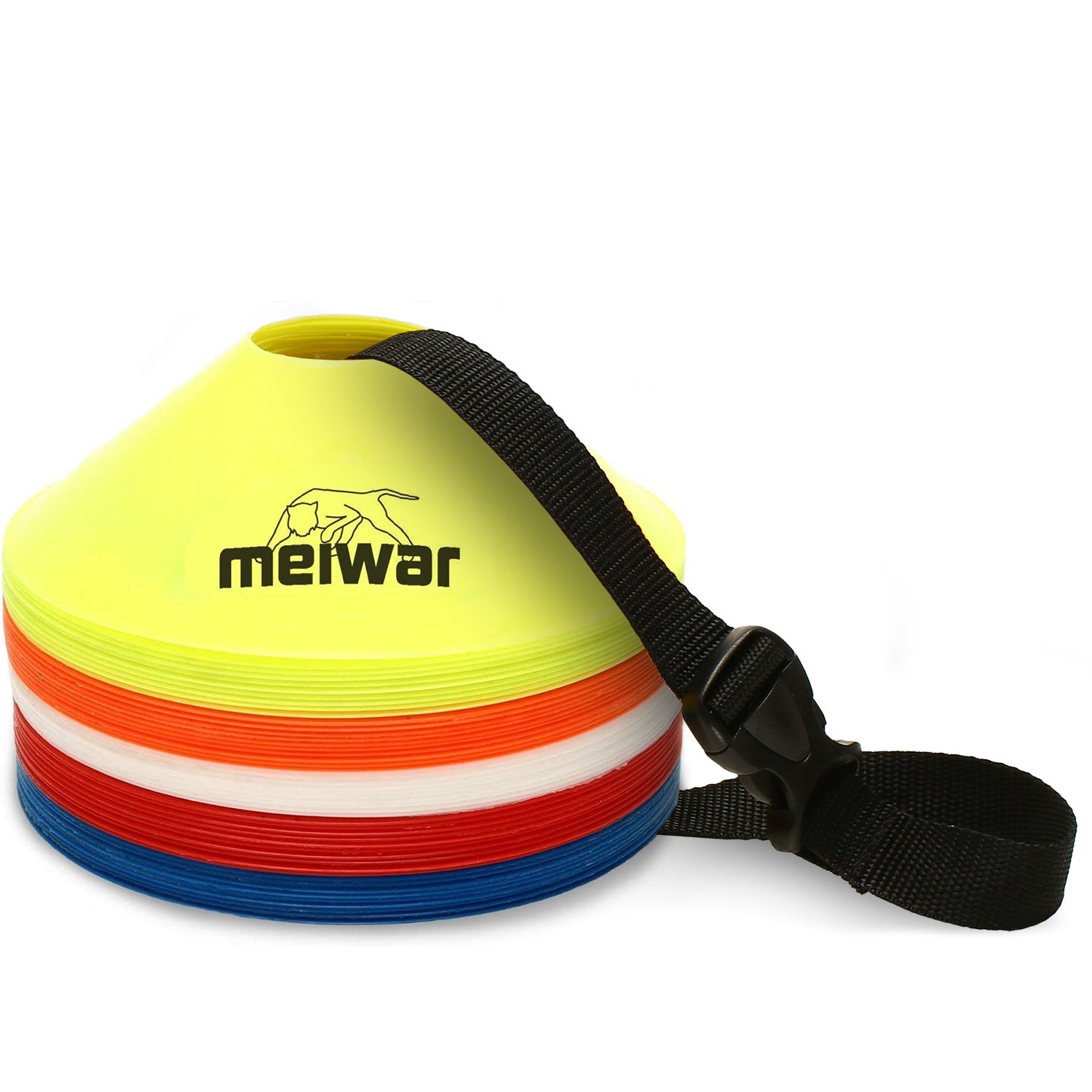 Aus flexiblem PE-Material gefertigt, sind die Hütchen robust und unzerbrechlich. Wenn du mal drauftrittst, springen sie einfach wieder in Form. Die Polypropylen-Tragegurte halten alles sicher zusammen.