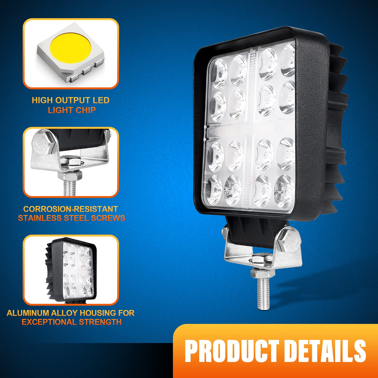Boah, diese SKYWORLD LED-Scheinwerfer sind einfach der Hammer! Mit 48W Gesamtleistung bringen die vier kleinen Kraftpakete richtig was weg. Das spot-weiße Licht ist so krass hell, dass du bei Nachtfahrten echt alles siehst. Und keine Sorge vor Regen - mit IP67 Wasserschutz halten die Dinger echt alles aus.\\n\\nDie Verarbeitung ist top: Gehäuse aus Alu-Druckguss, effiziente Kühlung durch die Thermorippen und über 30.000 Stunden Lebensdauer. Die 3,3-Zoll-Mini-Form sieht nicht nur clean aus, sondern passt auch an fast jedes Fahrzeug. Egal ob Auto, SUV, ATV, Traktor oder LKW - mit 12V/24V Kompatibilität machst du nichts falsch.\\n\\nMontage ist total easy: Kannst die Teile einfach an der Motorhaube oder Stoßstange befestigen. Der 120-Grad-Strahlwinkel gibt dir ein mega gleichmäßiges Lichtfeld. Und das Beste: Die verstellbare Halterung lässt sich flexibel positionieren. Anti-Schock, Anti-Regen, Anti-Fog - einfach unkaputtbar! Perfekt für Offroad-Abenteuer, Arbeitsfahrzeuge oder wenn du einfach bessere Sicht brauchst. Die Dinger rocken echt jeden Einsatz!