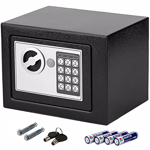 Deine Wertsachen sicher verwahren - mit diesem praktischen Mini-Tresor! Mit 4,6 Liter Volumen passt perfekt Bargeld, Schmuck, Pässe, Dokumente und mehr. Außenmaße: 23x17x17 cm - kompakt aber geräumig. Doppeltes Schließsystem: Digitaler 3-8-stelliger Code PLUS zwei Notschlüssel für alle Fälle. Nach 3 falschen Code-Eingaben gibt's ne Timeout-Pause - extra Sicherheit! Der Safe wiegt 2,54 kg und ist aus massivem Stahl. Mit 1,7 cm dicken Riegeln und 40 mm dicker Tür - richtig einbruchsicher. Auch feuerfest und wasserdicht durch doppelte Isolierung und Dichtungen. Innen ne weiche Teppichpolsterung damit nichts verkratzt. Einfache Montage: Vorgebohrte Löcher für Wand oder Boden, inklusive Ankerbolzen. Braucht 4x AA Batterien (nicht dabei). Perfekt fürs Home Office, Hotelzimmer oder einfach zu Hause. Damit schläfst du beruhigt!
