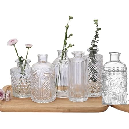 Dieses 12-teilige Mini-Vasen Set ist perfekt für kreative Blumenarrangements! Aus klarem Kristallglas mit verschiedenen Formen und Gravuren. Ideal für kleine Sträuße, Trockenblumen oder einzelne Blüten. Super für Tischdeko, Hochzeiten, Feiern oder einfach zur Wohnungsverschönerung. Die glatten Ränder verletzen nicht und die stabilen Böden geben sicheren Stand. Einfach zu reinigen und vielseitig kombinierbar. Machen jedes Arrangement zum Hingucker!