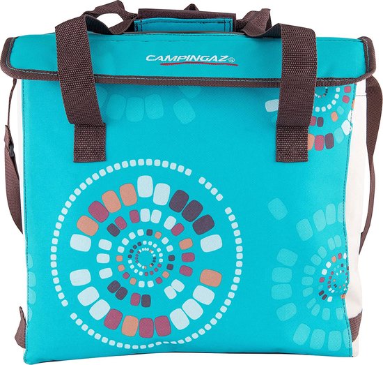 Perfekt für Picknicks, Camping und Tagesausflüge! Diese Campingaz Kühltasche im coolen Ethnic Design fasst stolze 29 Liter - genug Platz für 8 PET-Flaschen und jede Menge Snacks. Mit ihrer türkis-blauen Farbe sieht sie nicht nur gut aus, sondern ist auch super praktisch.