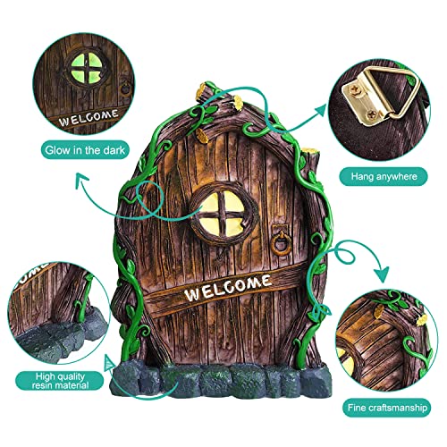Verwandle deinen Garten in eine magische Märchenwelt! Diese niedliche grüne Feentür mit Fenster bringt Fantasy-Feeling in deinen Outdoor-Bereich. Perfekt für Baumstämme, Gartenwände oder Blumentöpfe.