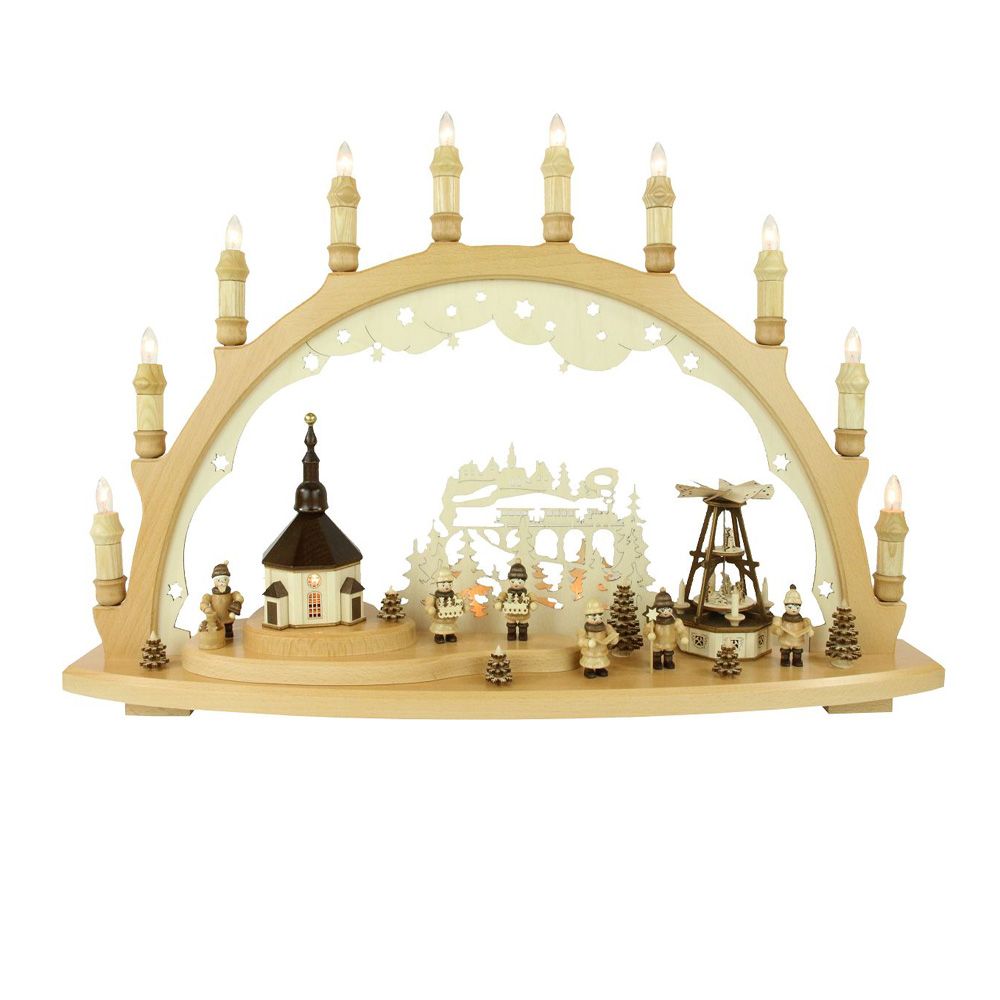 Weihnachtliche Stimmung garantiert! Dieser wunderschöne Schwibbogen von hellum mit dem Motiv 'Sternensänger' bringt festlichen Glanz in dein Zuhause. Aus naturfarbenem Holz im klassischen Stil gefertigt, ist er die perfekte Dekoration für die Advents- und Weihnachtszeit. Mit 10 echten Kerzen (plus 2 Ersatzkerzen) erzeugt er ein wundervolles, warmes Licht. Das 1,5 m lange Kabel mit Schalter ermöglicht dir flexible Platzierung - ob auf der Fensterbank, Kommode oder als Tischdekoration. Hochwertige Verarbeitung mit klaren Echtglaslämpchen sorgt für langanhaltenden Weihnachtszauber. Einfach den Stecker einstöpseln, anschalten und schon verbreitet dieser Lichterbogen gemütliche Weihnachtsstimmung in deinen vier Wänden. Traditionell, schön und einfach unverzichtbar für die festliche Zeit!