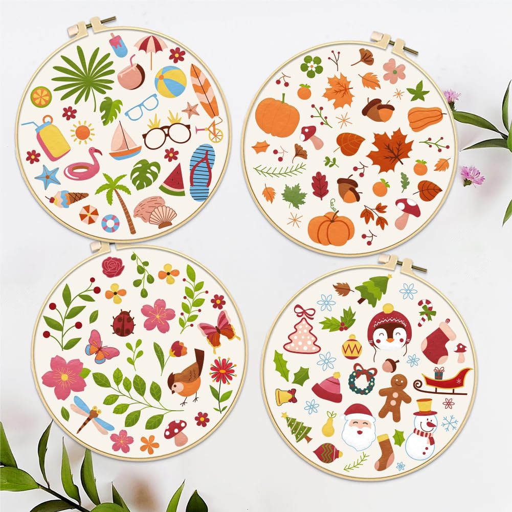 Du willst sticken lernen? Dieses 4-teilige Starter Set von FREEBLOSS hat alles, was du brauchst! Enthält bunte Stickgarne, 2 Rahmen (11,6 Zoll), Nadeln, Einfädler und detaillierte Anleitung. Die Motive sind schon auf den Stoff gestempelt - einfach nachsticken. Perfekt für Anfänger, aber auch Fortgeschrittene haben ihren Spaß. Mit Halloween-Motiven, aber für alle Anlässe geeignet. Die fertigen Werke machen sich super als Deko oder persönliche Geschenke. Alles in einer Box - einfach anfangen und kreativ werden!