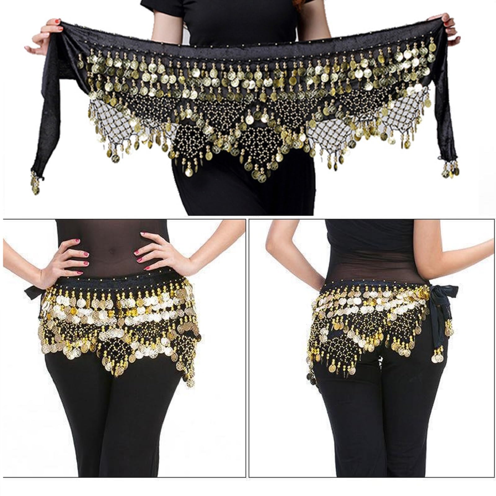 Einfach um die Hüfte binden und los tanzen! Perfekt für Bauchtanzkurse, Auftritte, Karneval oder Yoga. Die Münzen sind fest angenäht und fallen nicht leicht ab. Voll exotischer Stil - zieh alle Blicke auf dich!