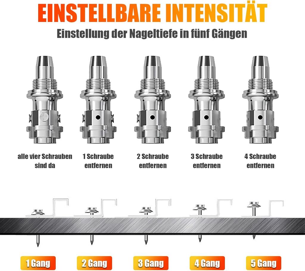 Mann, diese SEPSCO Nagelpistole ist ja mal ein richtig kraftvolles Teil! Vollständig manuell betrieben - braucht also weder Strom noch Druckluft. Mit 5 Gängen einstellbar, passt sie sich perfekt an verschiedene Materialien an. Durchdringt sogar 3mm Stahlplatten in nur 0,1 Sekunden - Wahnsinn! Aus Vollstahl gefertigt, robust und langlebig, nicht explosionsgefährdet. Im Komplett-Set mit 150 Nägeln (7,3mm Lochdurchmesser), Wartungsöl, Ersatzteilen, Schutzbrille, Handschuhen und Reinigungsbürste. Perfekt für Betonwände, Ziegel, Aluminium und Holz. Das Dual-Silence-Design macht sie leiser als andere Modelle. Leicht und tragbar, aber trotzdem extrem kraftvoll. Ideal für Elektroinstallation, Rohrverlegung, Kabelbündelung oder Aufhängen von Regalen. Einfach zu bedienen - Schutzausrüstung anziehen, Nagel einlegen, senkrecht ansetzen und mit Kraft draufschlagen! In praktischer Werkzeugkiste verpackt.