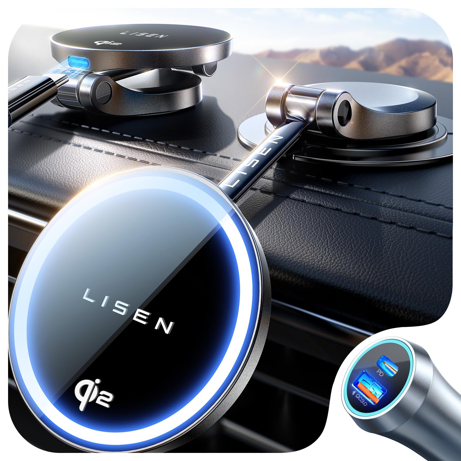 A2C Magsafe Auto Handyhalterung Mit 15W QI2 Laden - Magnetische Halterung Für IPhone