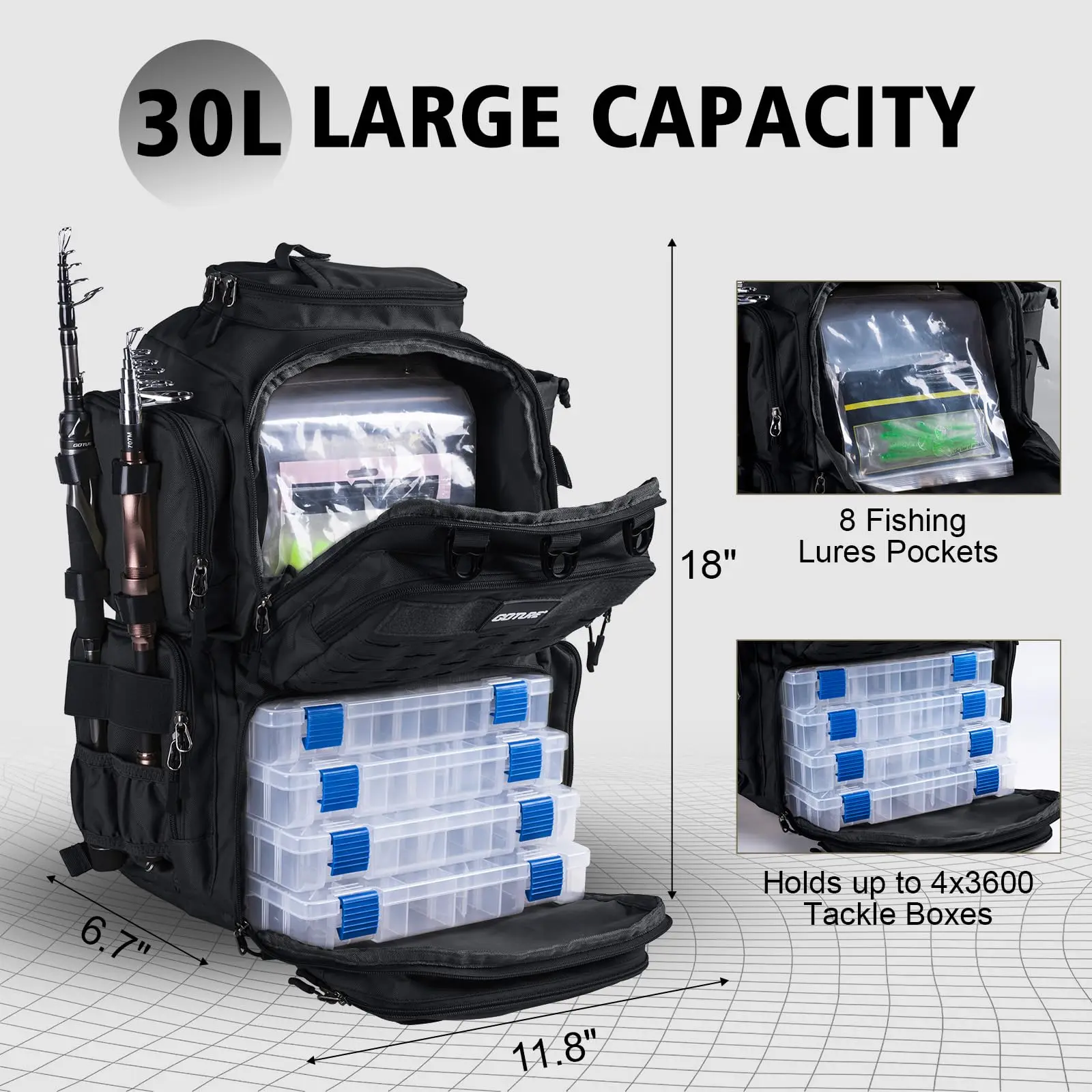Goture 72L Angelrucksack Mit 16L Kühlfach - Wasserdicht Mit Rutenhaltern Für Outdoor