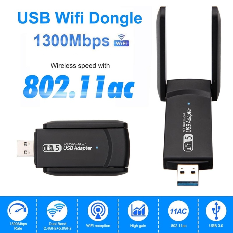 Hey, dein PC hat kein WLAN? Kein Problem mit diesem USB-Stick! Der kleine Kerl bringt dir schnelles Internet in 2,4GHz (bis 400Mbps) und 5,8GHz (bis 867Mbps) - also richtig flott! \\n\\nMit zwei 5dBi-Antennen, die du drehen und in die beste Position bringen kannst, kriegst du auch bei schwachem Signal noch eine stabile Verbindung. Und das bei USB 3.0 - das ist 10x schneller als USB 2.0! \\n\\nKompatibel mit so gut wie allem: Windows 11, 10, 8, 7, Vista, XP und sogar Mac OS. Bei Win10/11 einfach einstecken und loslegen - bei anderen Systemen kurz den Treiber installieren (per CD oder Download). \\n\\nKann \u00fcbrigens nicht nur empfangen, sondern auch WLAN senden - praktisch als Hotspot! Egal ob du zockst, streamst oder einfach nur surfst - mit diesem Stick bist du bestens connected. Einfach mal ausprobieren!