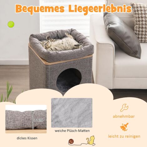 Das Paradies für deine Samtpfote! Diese Kratztonne von GOPLUS bietet alles, was eine Katze glücklich macht: 2 gemütliche Höhlen zum Verstecken und Schlafen, eine obere Aussichtsplattform und 2 kaktusförmige Kratzsäulen. Maße: 48x83 cm - perfekt für große und kleine Katzen. Die beiden Wohnungen können auch separat genutzt werden - ideal bei mehreren Katzen im Haushalt! So gibt's weniger Streit. Die weichen Plüschbezüge laden zum Kuscheln ein, während die hängenden Bälle zum Spielen animieren. Jede Ebene trägt bis zu 10 kg - auch für stattliche Katzen geeignet. Die Kratzsäulen schonen deine Möbel - deine Katze kann ihre Krallen daran wetzen. Montage ist kinderleicht, ganz ohne Werkzeug. In grau-orange - passt in jede Wohnung. Deine Katze wird diesen Spielturm lieben! Perfekt für Klettern, Ausruhen, Spielen und Beobachten - alles in einem!
