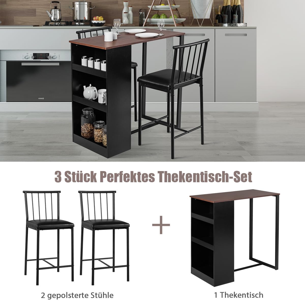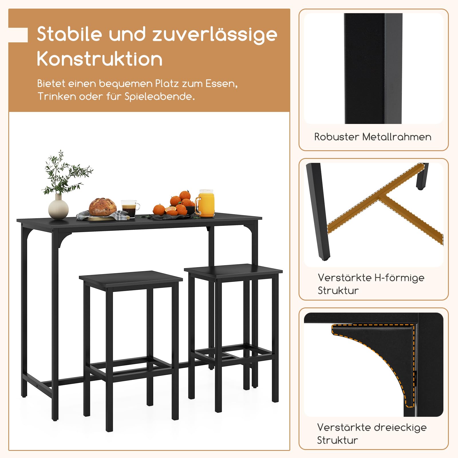 Wow, dieses RELAX4LIFE Bartisch-Set bringt richtig Industrie-Charme in deine Küche! Komplett mit 120 cm langem Tisch und 2 super bequemen Barhockern - perfekt für gemütliche Abende mit Freunden oder entspannte Frühstücke. Der Tisch hält bis zu 91 kg aus, jeder Hocker sogar 150 kg - also keine Sorge bei wilden Partys! Das coole dreieckige Metall-Gestell gibt mega Stabilität und sieht dabei voll modern aus. Die Fußstützen an Tisch und Hockern sind der Hit - da kannst du stundenlang sitzen ohne dass die Beine einschlafen. Und die verstellbaren Fußpolster sorgen auch auf schiefen Böden für perfekten Stand. Wenn die Hocker mal nicht gebraucht werden, einfach unter den Tisch schieben - platzsparend und ordentlich. Die Farbe Kaffee/Grau/Schwarz passt zu fast jedem Einrichtungsstil. Montage ist nötig, aber machbar - und das Ergebnis lohnt sich absolut! Ob in der Küche, im Wohnzimmer oder sogar im Home-Office - dieses Set macht überall was her. Die Oberfläche aus Spanplatte ist pflegeleicht, einfach abwischen und gut ist. Echt ein Hingucker der auch praktisch ist - was will man mehr?