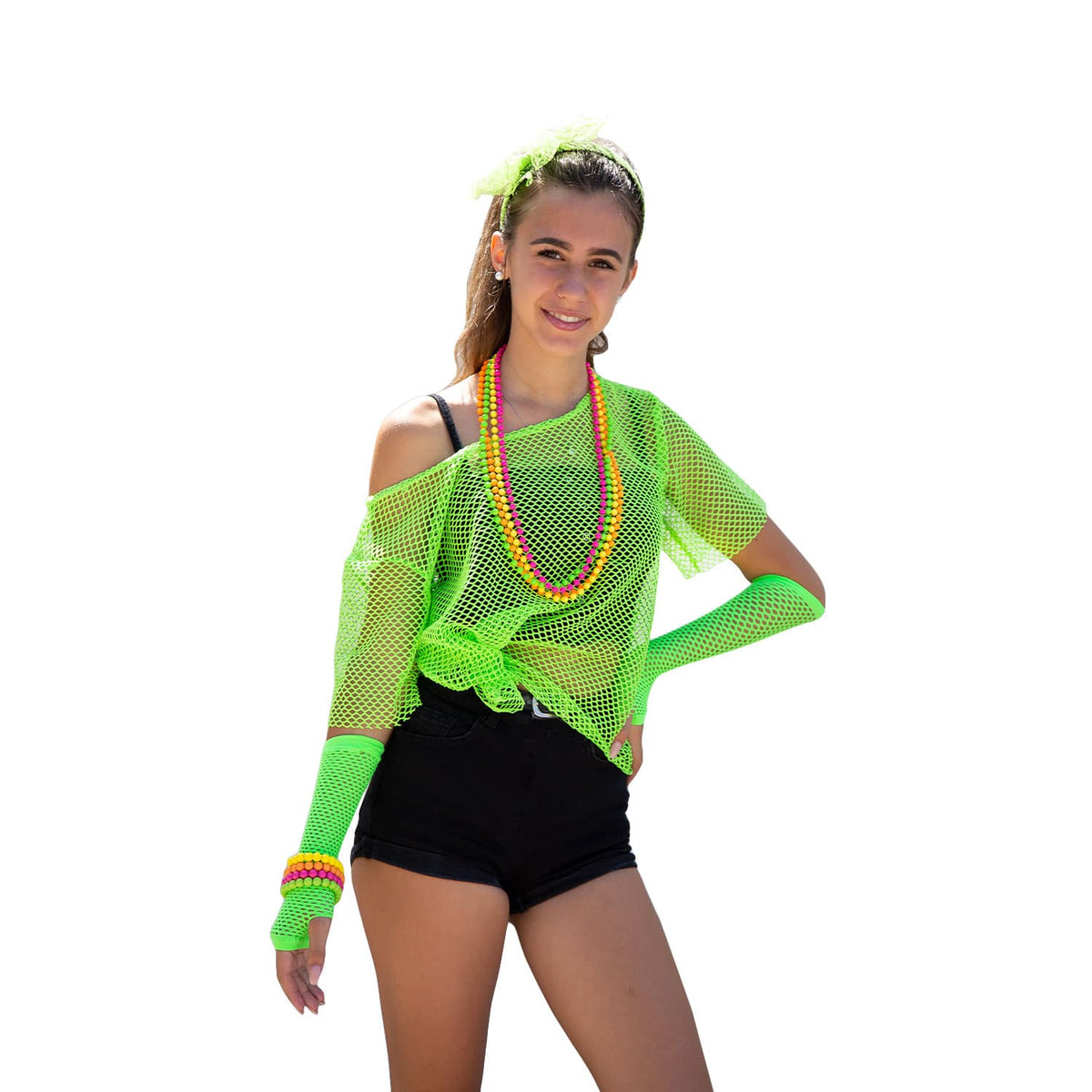 Ready für die nächste 80er Party? Dieses Set macht dich zum Star! Enthalten ist ein cooles Mesh-Shirt und zwei knallige Neon-Halsketten - damit wirst du garantipt zum Hingucker! Das Netzoberteil ist super dehnbar und liegt angenehm auf der Haut. Perfekt für Neon-Partys, Retro-Events, Halloween oder Cosplay - da fällst du richtig auf! Die Qualität ist top - hochwertiges Material das nicht so schnell reißt. Das Design ist voller Leben und Energie - genau wie die 80er halt! Die bunten Neon-Farben helfen deinen Freunden dich in der Menge leicht zu finden. Super für Clubs, Bars, Geburtstagsfeiern oder Themenpartys - überall wo's bunt zugeht! Auch für Mannschaftssportevents geeignet zur Team-Identifikation. Einfach anziehen und los - mehr brauchst du nicht für den perfekten 80er Look! Das Set ist auch ein super Geschenk für Freundinnen oder Familienmitglieder die was Verrücktes suchen. Mach die Party unvergesslich und werde zum Mittelpunkt des Abends! Die Kombination aus Netzshirt und Neon-Ketten ist einfach genial - da musst du nicht lange rumüberlegen was du anziehst. Einfach Set auspacken und du bist partyready!