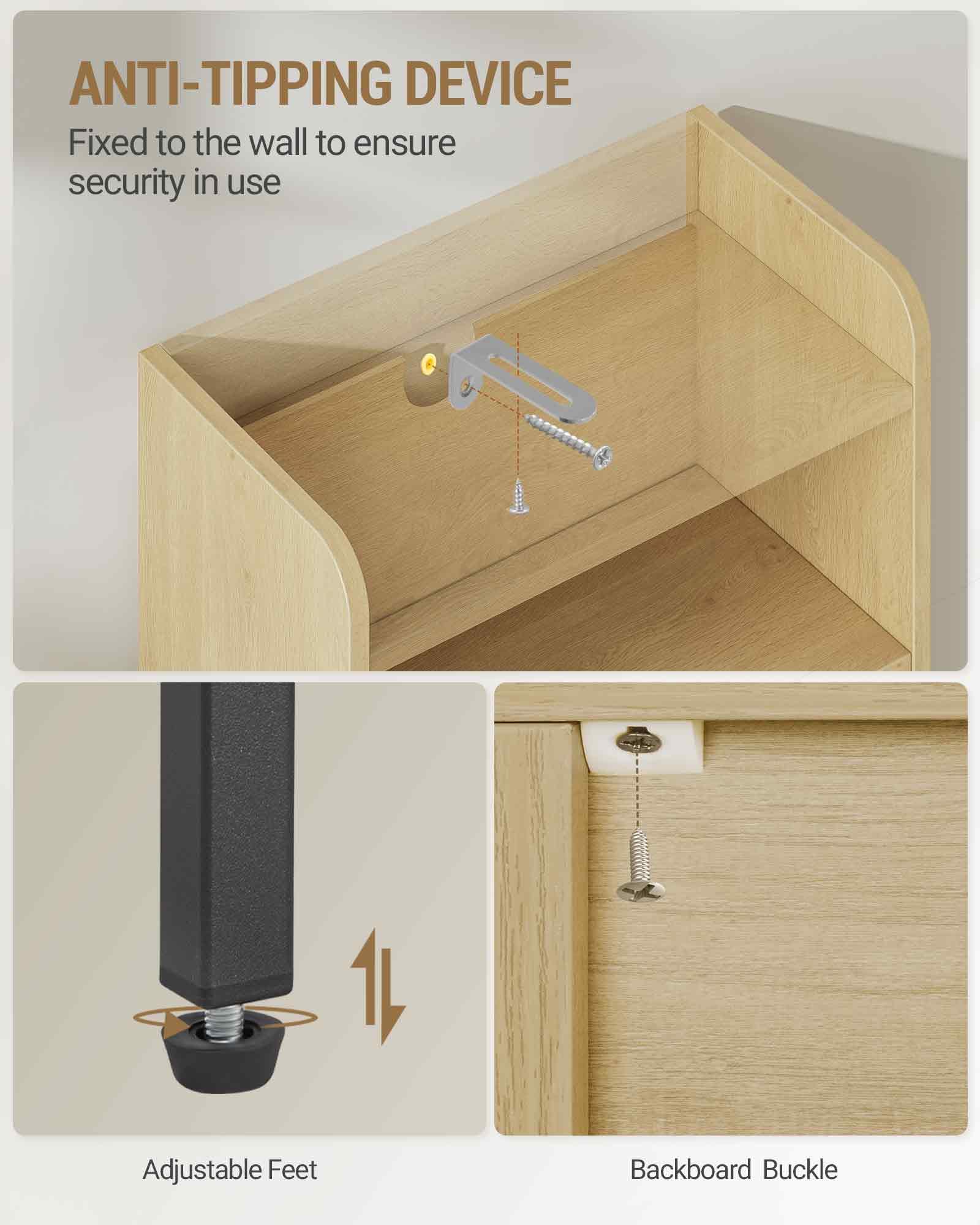Platzsparender Badezimmerschrank für kleine Räume! Mit 20x37x83cm passt er auch in enge Badezimmer. Zwei Türen mit Magnetverschluss, zwei verstellbare Einlegeböden und offene Fächer für optimale Organisation. Aus feuchtigkeitsresistenten Spanplatten in heller Eiche, Metallrahmen mit höhenverstellbaren Füßen. Einfache Montage in 30-40 Minuten, inklusive Kippsicherung. Endlich Ordnung im Bad - für Handtücher, Kosmetik und Toilettenpapier!