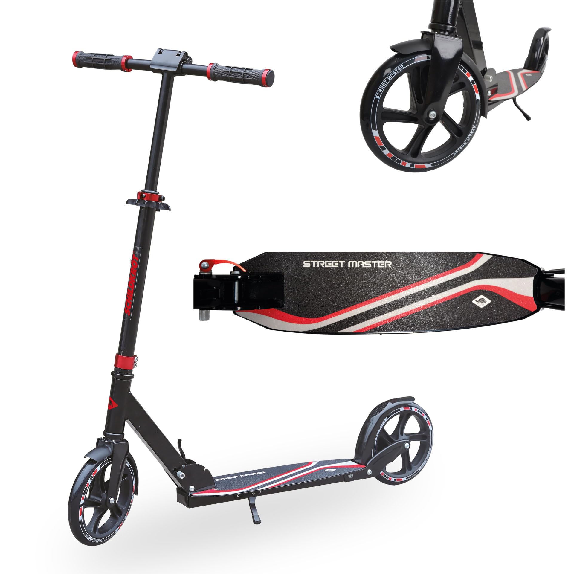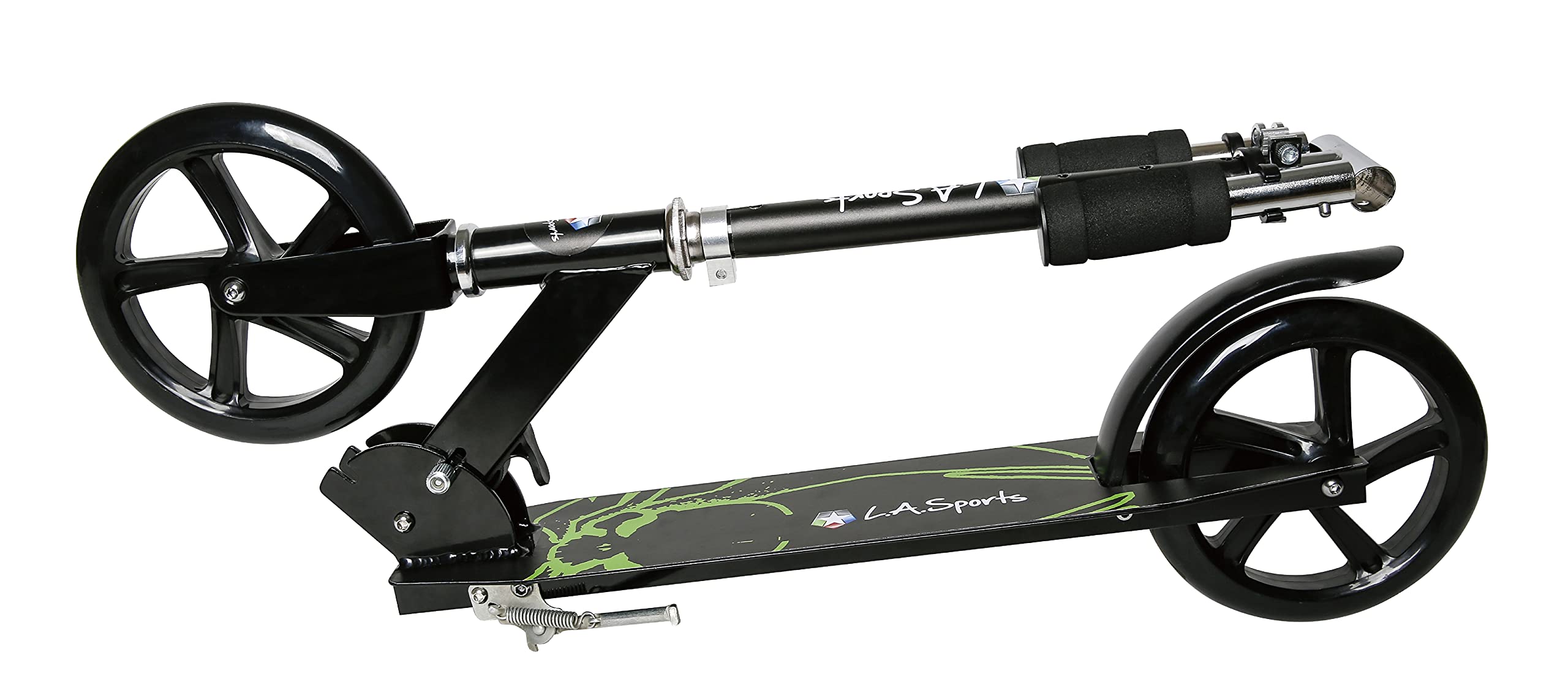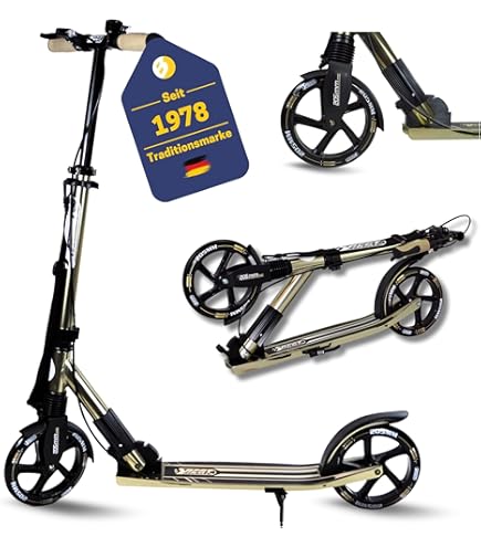 Pendeln in der Stadt war noch nie so angenehm! Der BLACKWHEELS Zoom Scooter macht jede Fahrt zum Vergnügen. Die großen 200mm Räder und der Stoßdämpfer federn selbst holpriges Kopfsteinpflaster super ab - kein Holpern mehr! In Sekunden zusammengeklappt passt er unter jeden Schreibtisch oder in die Bahn. Der lenker ist höhenverstellbar von 95-105cm und damit für Groß und Klein ideal. Die klappbaren TPR-Griffe liegen angenehm in der Hand und machen den Transport noch einfacher. Das extrabreite Trittbrett gibt dir sicheren Stand, und das moderne Verriegelungssystem mit Drehverschluss garantiert Stabilität. Ob für den Weg zur Arbeit, zum Einkaufen oder für Stadtausflüge - dieser Scooter ist dein perfekter Begleiter! Einfach ausklappen und losrollen!