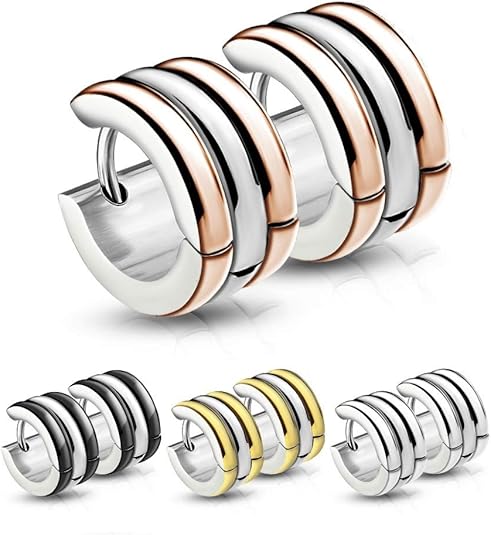Suchst du nach Ohrringen, die auffallen aber nicht übertrieben wirken? Diese Treuheld Creolen mit 3 Ringen sind genau das Richtige! Aus hochwertigem Edelstahl gefertigt, sind sie rostfrei, hypoallergen und super langlebig. Mit 7mm Breite und 12mm Höhe haben sie die perfekte Größe - auffällig genug, aber nicht zu schwer im Ohr. Der Klappverschluss macht das An- und Ausziehen super einfach und sitzt sicher. Erhältlich in vier stylischen Farbkombinationen: Schwarz-Silber, Gold-Silber, Silber-Silber und Rosegold-Silber. Perfekt für jeden Anlass - ob im Büro, beim Date oder auf der Party. Die mehrreihige Optik mit den drei Ringen sieht richtig edel aus und passt zu fast jedem Outfit. Da sie aus medizinischem Edelstahl sind, eignen sie sich auch super für frische Piercings. Ein echter Allrounder für Damen und Herren, der in keiner Schmucksammlung fehlen sollte!